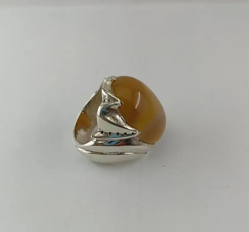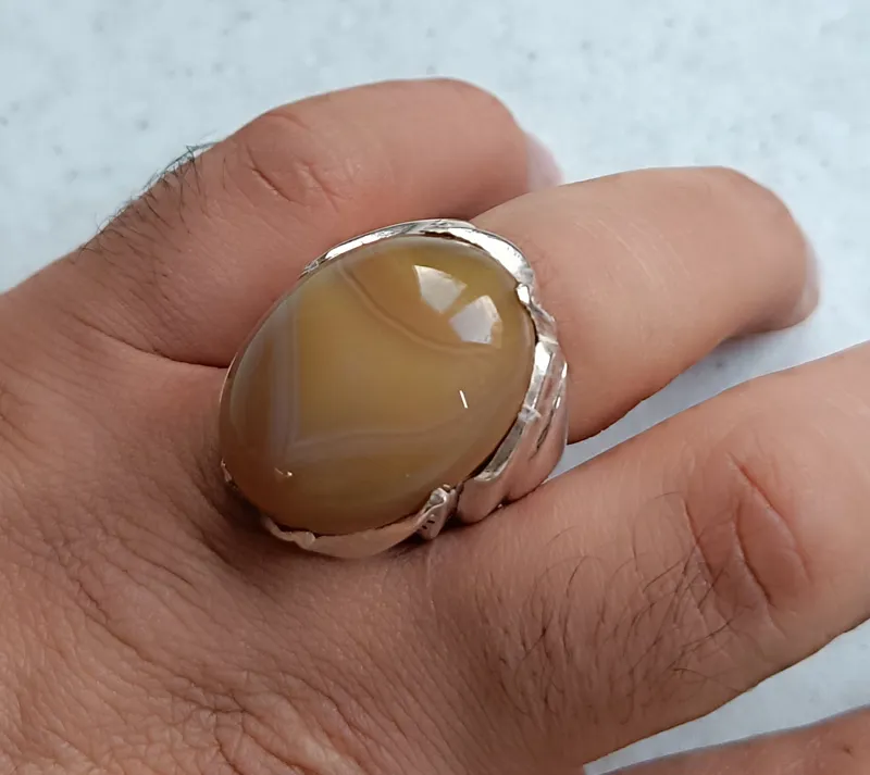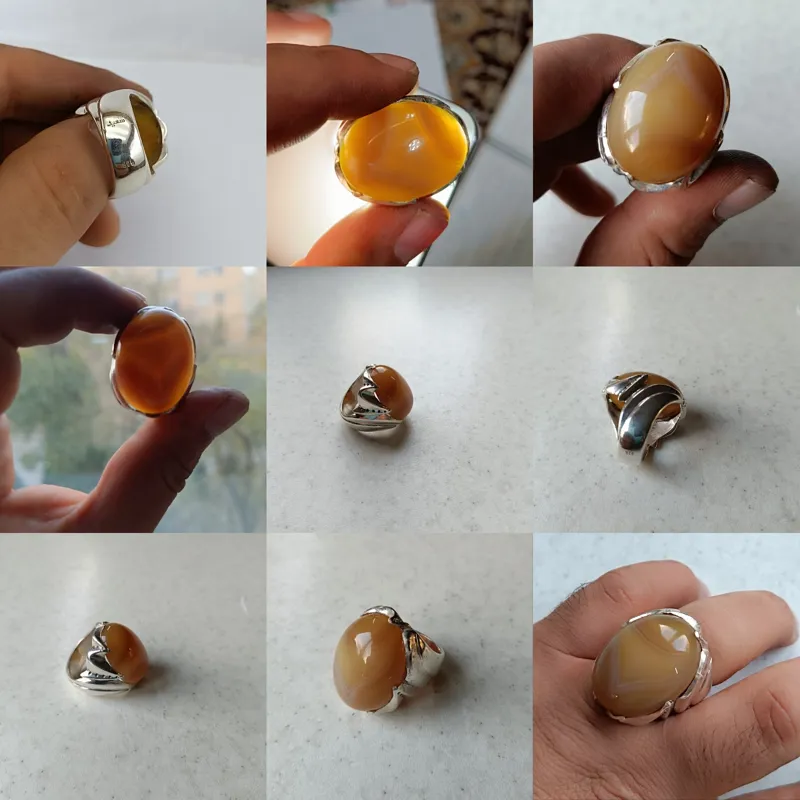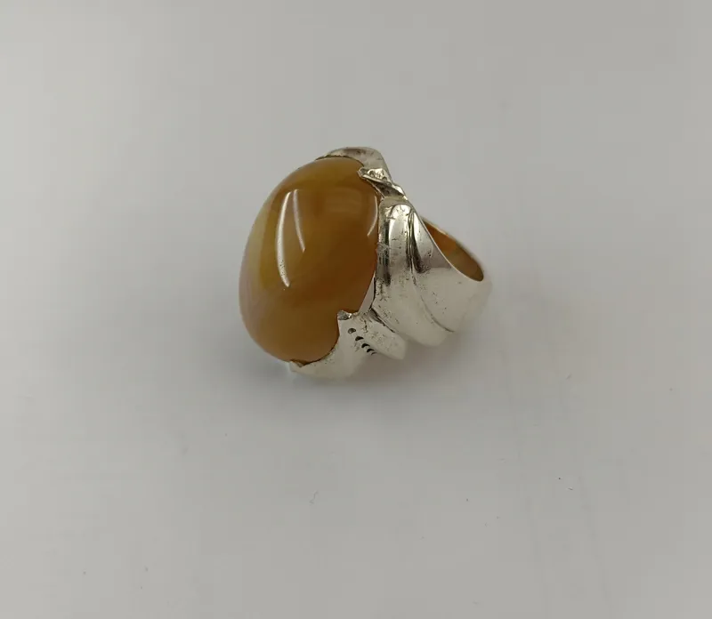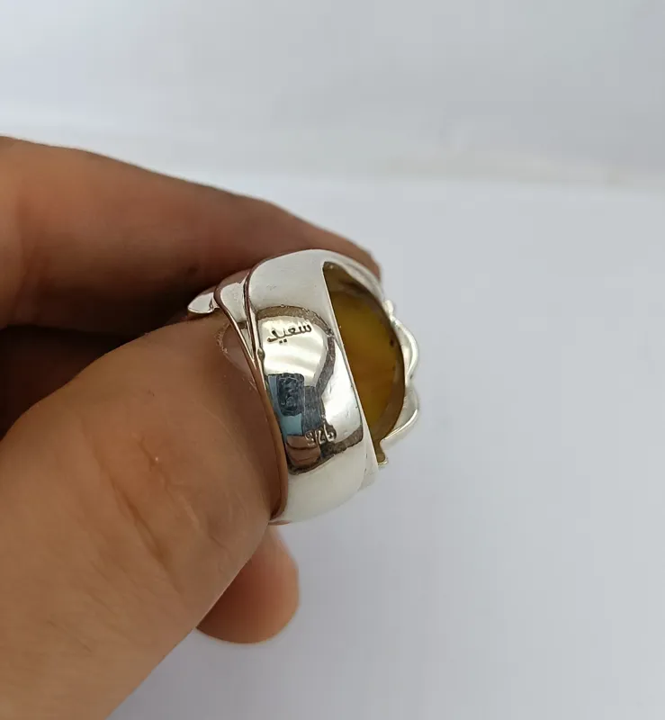 انگشتر نقره دستساز عقیق سلیمانی با رنگ زرد کاملا طبیعی بدون بهسازی و کمیاب درشت سالم بسیار زیبا