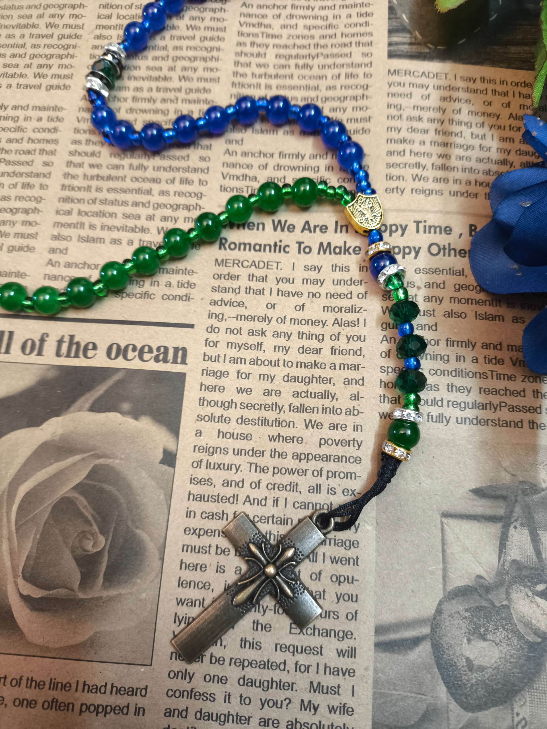 رزاری نخی 59 دانه سبز آبی کد 80