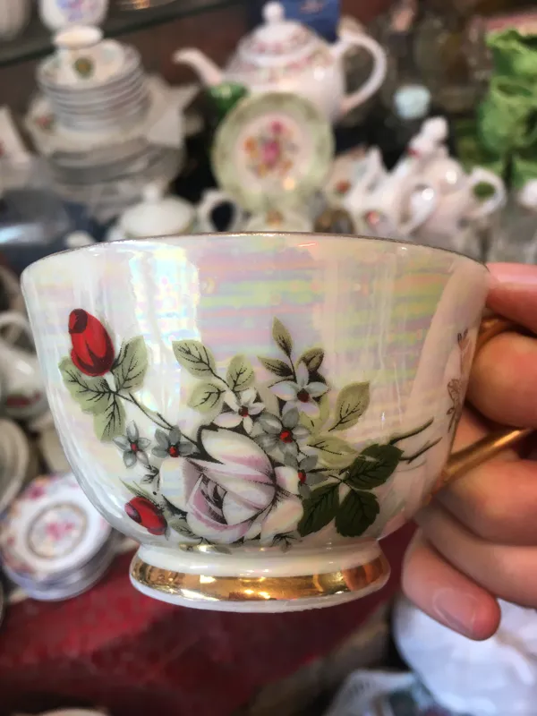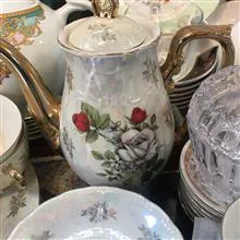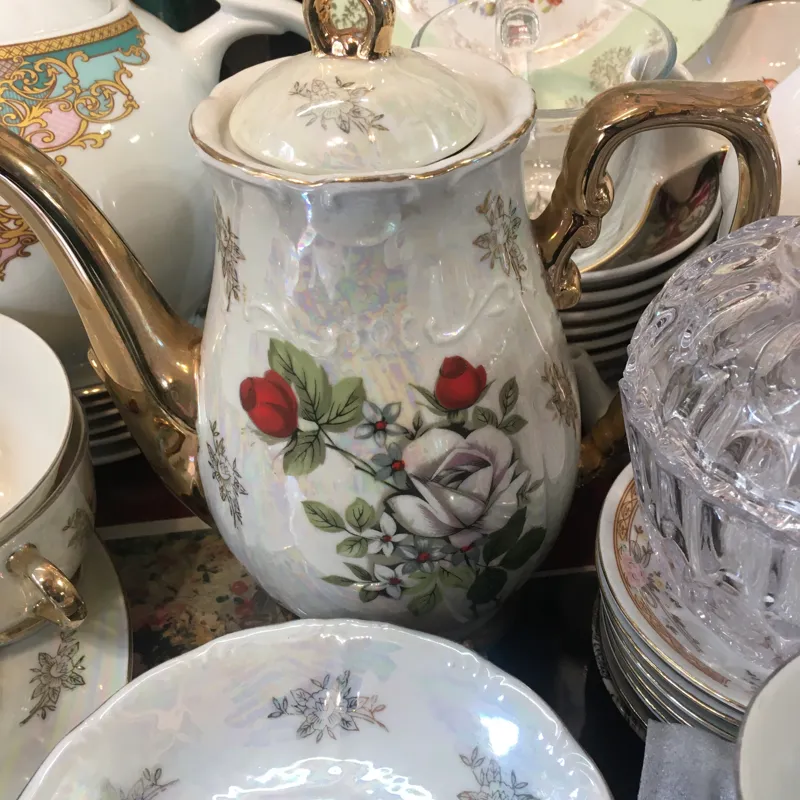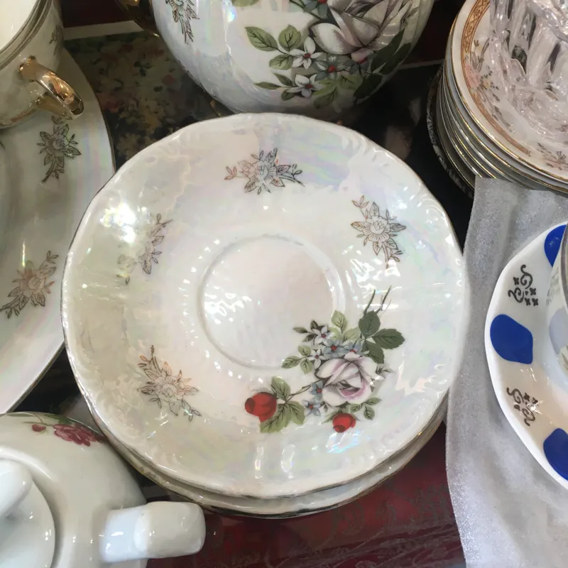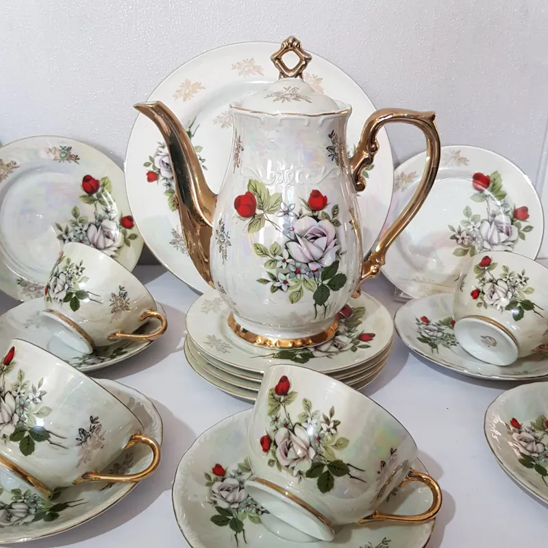 یک قوری بلند چینی ژاپن همراه 4 نعلبکی و 4فنجان