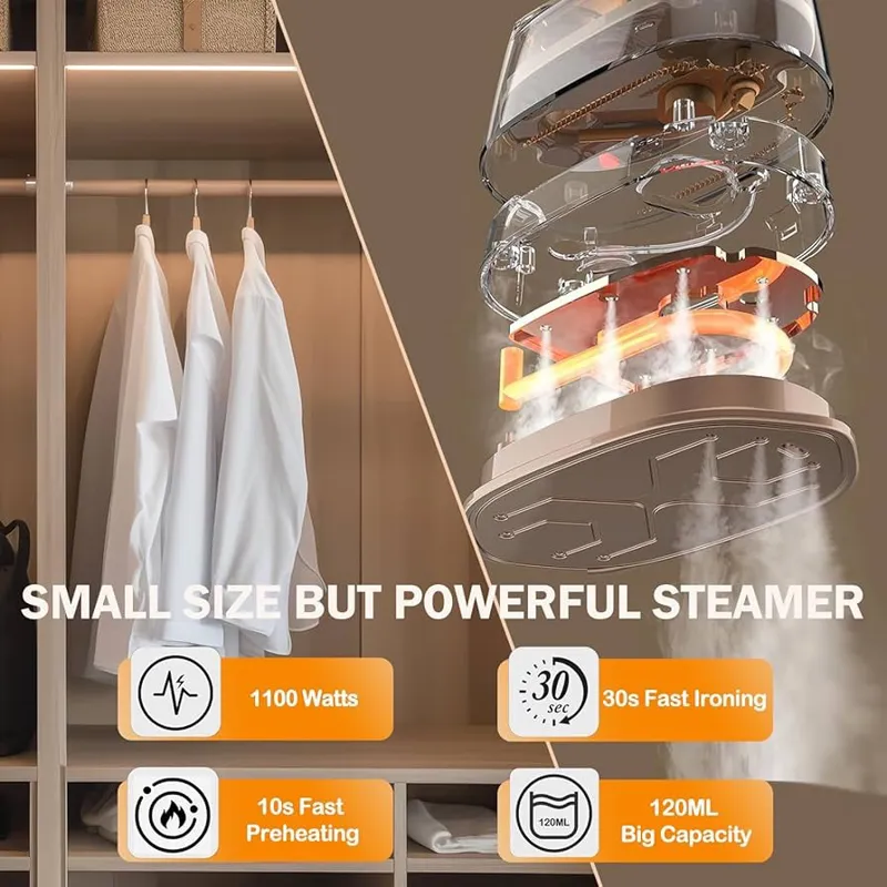 اتو بخار مینی، اتو بخار دستی 2 در 1، 1100 وات، گرم شدن سریع 15 ثانیهای، اتو بخار قابل حمل برای خانه و سفر، مناسب برای هدیه.