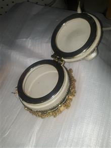 این شاهکار هنری با قدمتی ارزشمند، دارای طراحی منحصربفرد با نقوش دستی ظریف روی چینی اصل است که هر بینندهای را مجذوب خود میکند. درب جعبه با لولای برنجی اصل کار شده و داخل آن مخمل مرغوب برای محافظت از جواهرات شماست.