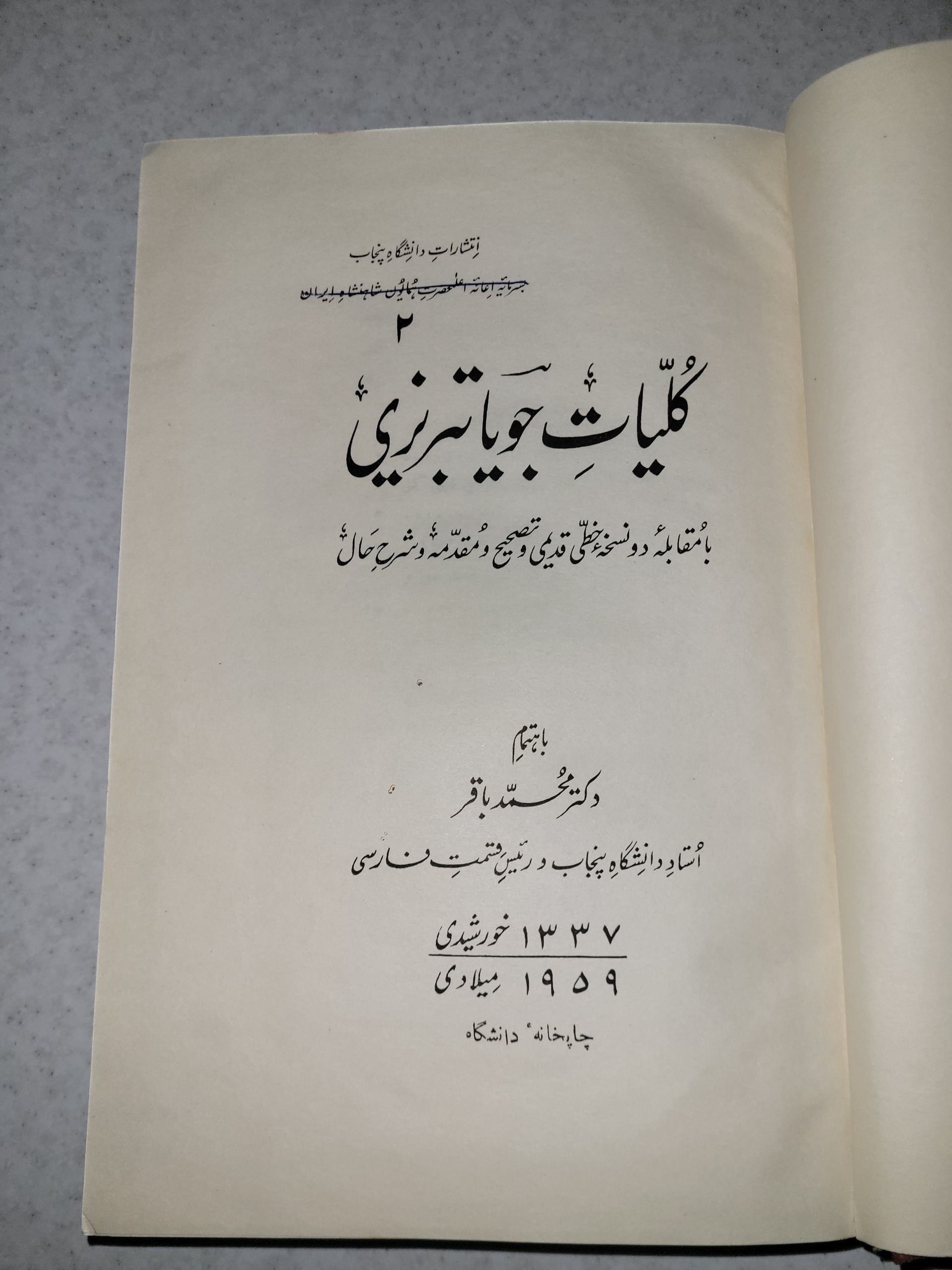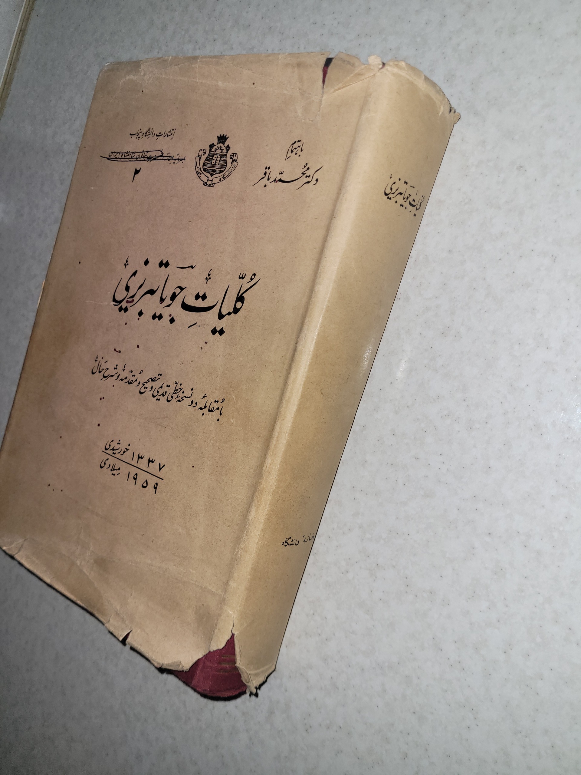 کلیات دیوان جویا تبریزی چاپ دانشگاه پنجاب پاکستان سال 1337 قطع نیم رحلی با روکش اصلی که بینهایت نایابه