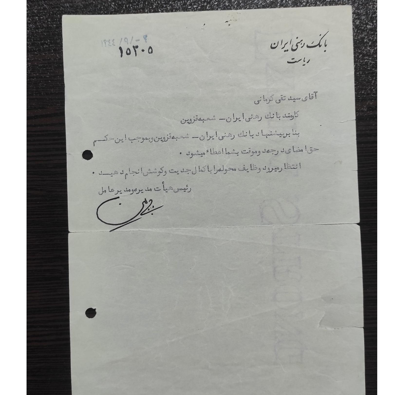 نامه مدیر عامل بانک ملی ایران به شعبه قزوین 1344