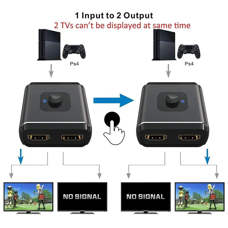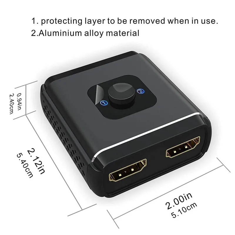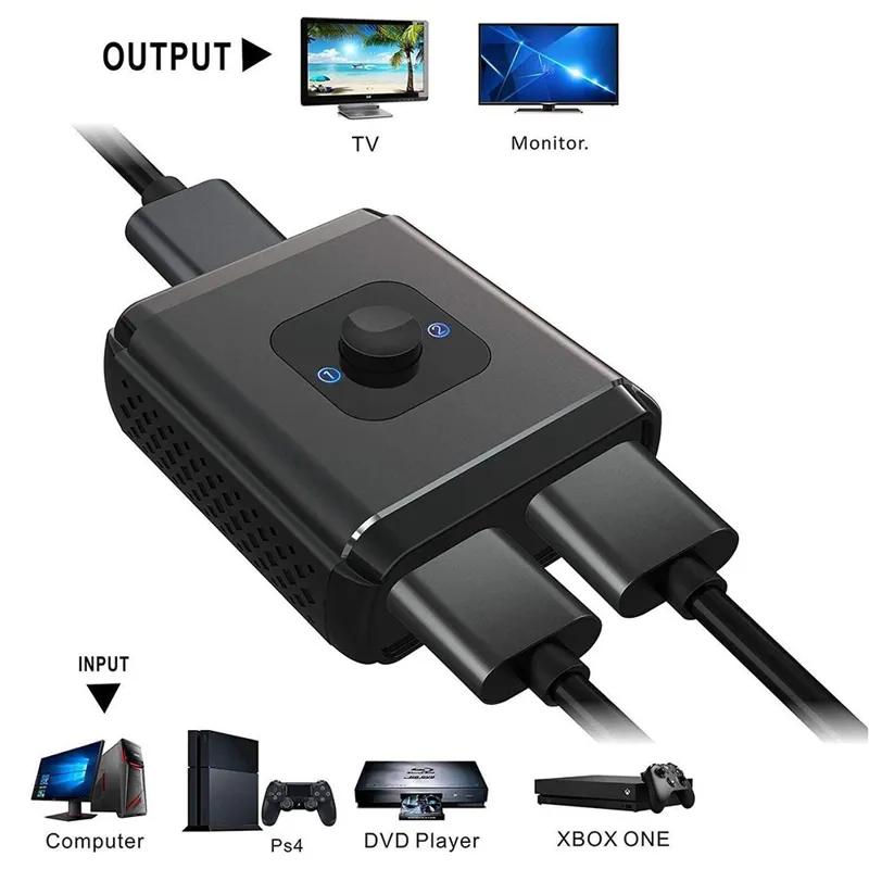 سوئیچ دوطرفه HDMI : با این سوئیچ HDMI می توانید دو منبع HDMI را به یک نمایشگر HDMI متصل کنید ، یا یک منبع HDMI را برای جابجایی بین دو نمایشگر وصل کنید ، با 2 نشانگر LED ، به راحتی می توانید از طریق چراغ LED متوجه شوید که کدام پورت فعال است (فقط 1 از 2 نمایشگر در یک زمان کار می کند)