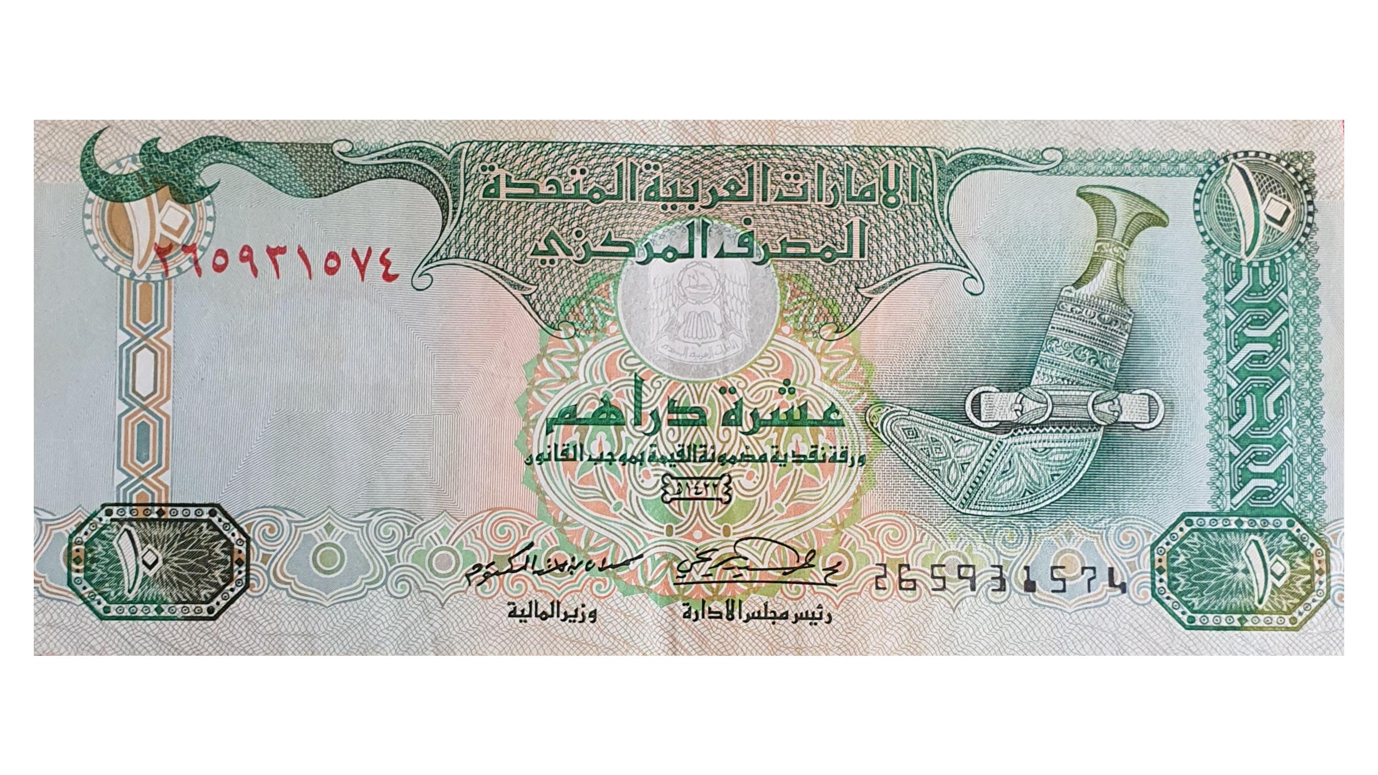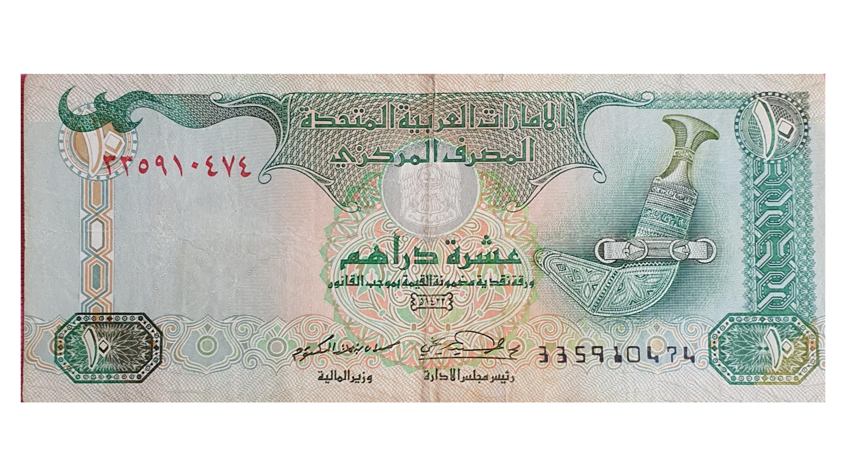 اسکناس کاغذی 10 درهم 1422 امارات متحده عربی