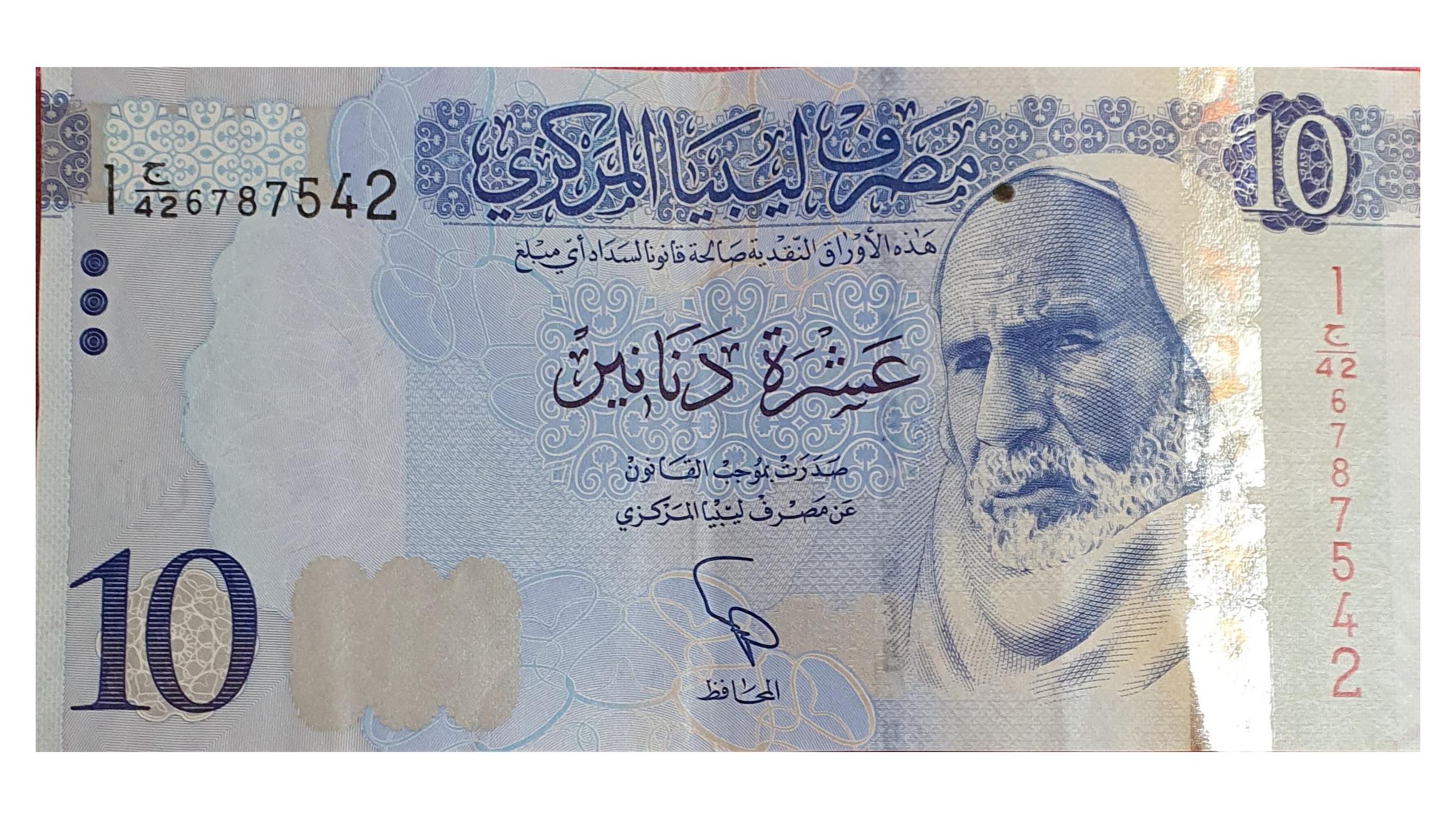 اسکناس 10 دینار 2015 لیبی ، تصویر عمر مختار