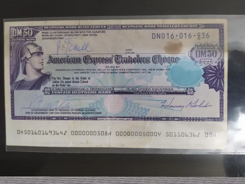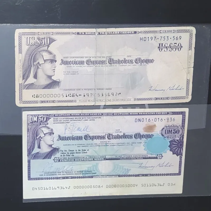 بهمراه ست ارزشمند زیبا و کمیاب دو برگ تراول چک اکسپرس. شامل 50دلار آمریکا و 50 مارک آلمان 1993 مورد مصرف در دو کشور