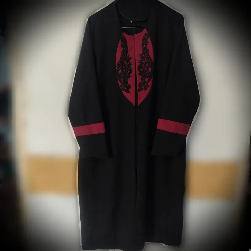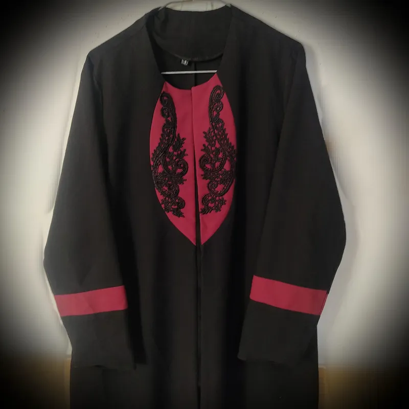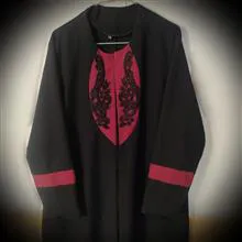 مانتو مشکی قرمز زیبا مناسب فصل زمستان و پائیز دورسینه59قد115