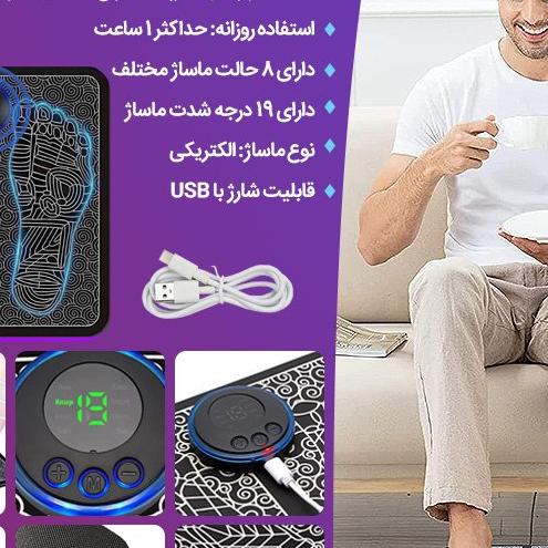 ماساژور هوشمند پا EMS Foot Massager یک پد نرم به نرمی پد یوگاست ولی بسیار باریکتر که توسط باتری موجود در کنترل آن امواج مغناطیسی را به کف پای شما میفرستد. کف پا را به تخصصی ترین شکل ممکن ماساژ میدهد. این ماساژور تاشو بسیار سبک و قابل حمل می باشد. باتری آن با کابل USB که بهمراه پد تقدیم شما میشود شارژ میشود. این پد که از جنس پد یوگاست به راحتی با دستمالی نم دار و به راحتی قابل تمیز شدن است. با کمک این پد بی صدا به آرامشی بی نظیر در کف پای خود خواهید رسید. چرا که این پد از کف پا با به گردش در آوردن خون در رگها و به حرکت در آوردن عصب ها پای شما را تا قسمت ران ها ماساژ خواهد داد. ماهیچه های خواب رفته و ضعیف را قوت میبخشد.برای برآوردن نیازهای مختلف ماساژ، تکنیکهای شبیهسازی هوشمند ماساژ مصنوعی با توجه به ترجیحات شخصی و استرس فیزیکی، میتوانند آزادانه از درجات شدت مختلف و حالت های مختلف به دلخواه انتخاب و تنظیم کنید.برعکس برخی ماساژور سنتی پا که وزن سنگینی دارند، این محصول فقط یک پد نرم و راحت برای پا است. سبک و تاشو با امکان حمل آسان در هر مکانی است. این ماساژور پا از مواد نرم مناسب یوگا و سطح چرمی ساخته شده است و با استفاده از حوله مرطوب قابل خشک شدن است. کاملا بی صدا است می توانید هنگام تماشای تلویزیون، مطالعه، کار در دفتر یا استراحت از آن استفاده کنید.با تکنولوژی EMS،گردش خون را در پاها و ساق پا بهبود می بخشد.بر خلاف ماساژورهای معمولی پا، ماساژور پا EMS بسیار ملایم است و برای انواع پوست مناسب است.این دستگاه برای افرادی که به باشگاه می روند، افرادی که مسافت های طولانی را طی می کنند، افرادی که اغلب دوچرخه سواری می کنند، می رقصند، از کوه ها بالا می روند و افرادی که دوست دارند کفش پاشنه بلند بپوشند، مناسب می باشد. همچنین برای مسافران، افراد میانسال و سالخورده، افرادی که دارای شغل اداری هستند مناسب است. ماساژ منظم پا به شما کمک می کند تا با خستگی های روزانه خود مقابله کنید. این دستگاه پاهای شما را در یک روز پر کار آرام کرده و خستگی انباشته را از بین می برد. ماساژور الکتریکی پا با ورود پالس ها به زیر غشاء پوستی خطوط عصبی را تحریک می کنند تا به طور خودکار با هم تعامل کنند و آرامش را به پا های شما بازگرداند.