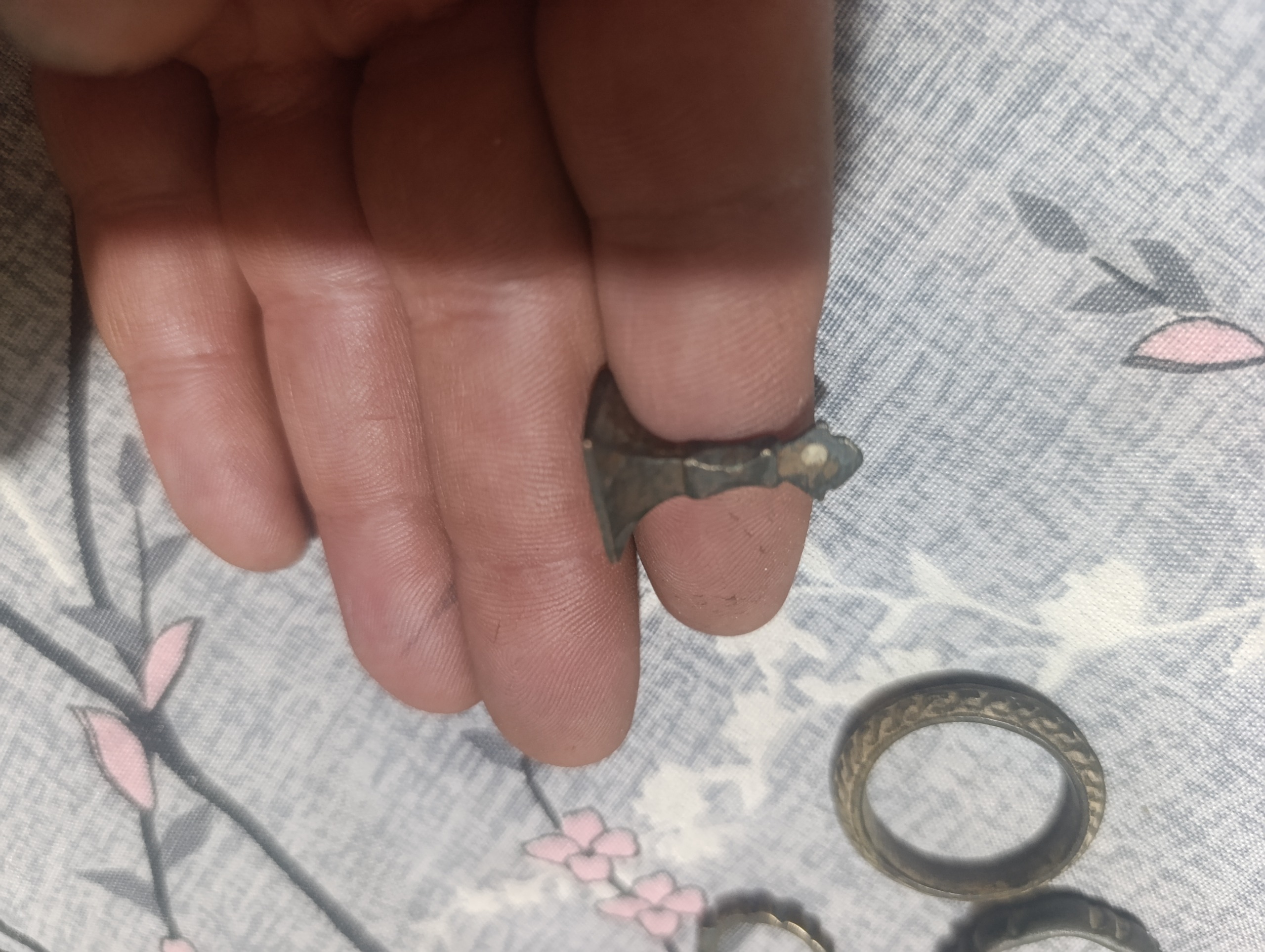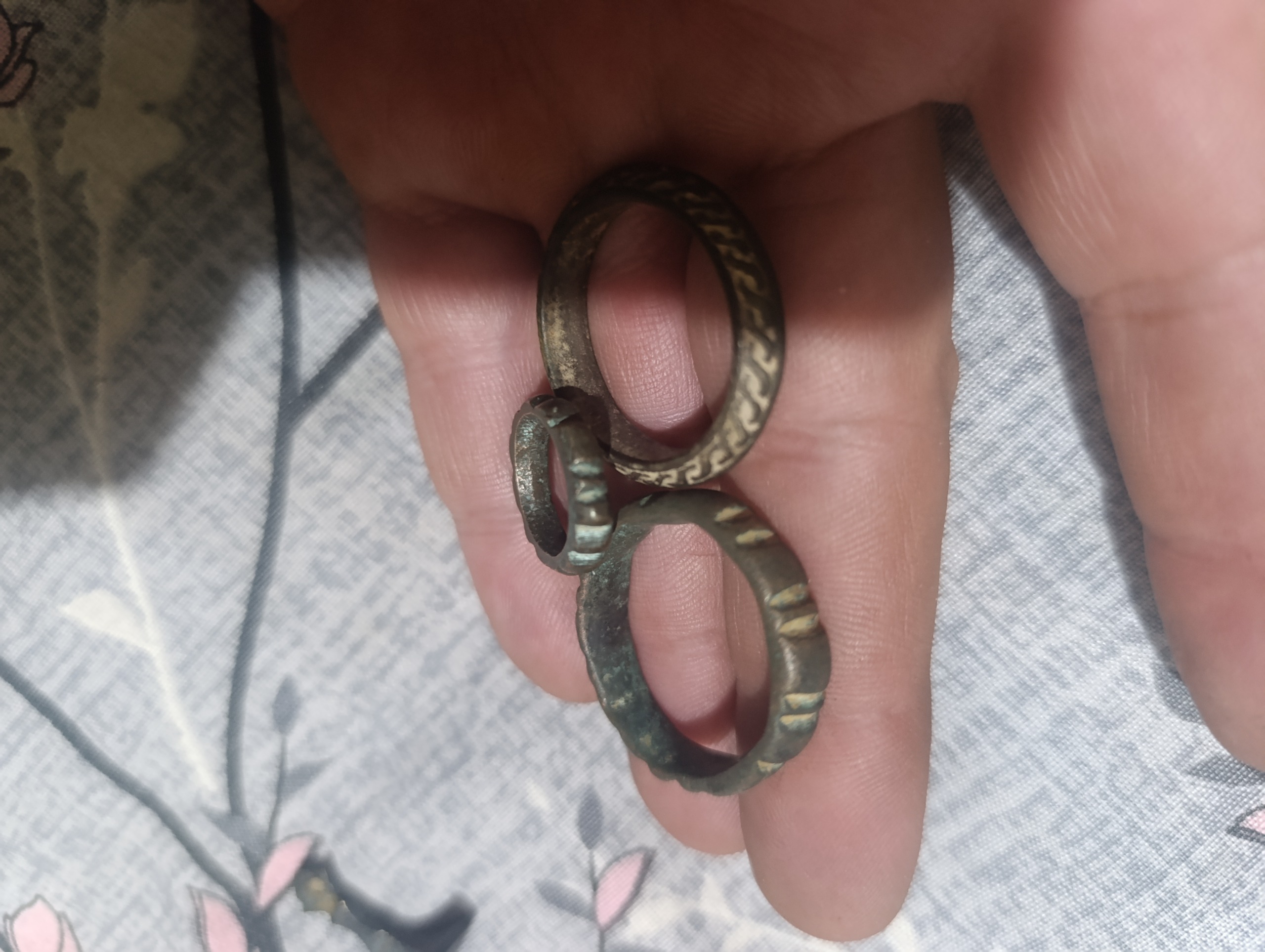 سه عدد. حلقه بسیار کهنه و قدیمی جنس معروف به ریش بند و یک عدد مهر اسم جنس مفرقی بسیار کهنه و بسیار قدیمی
