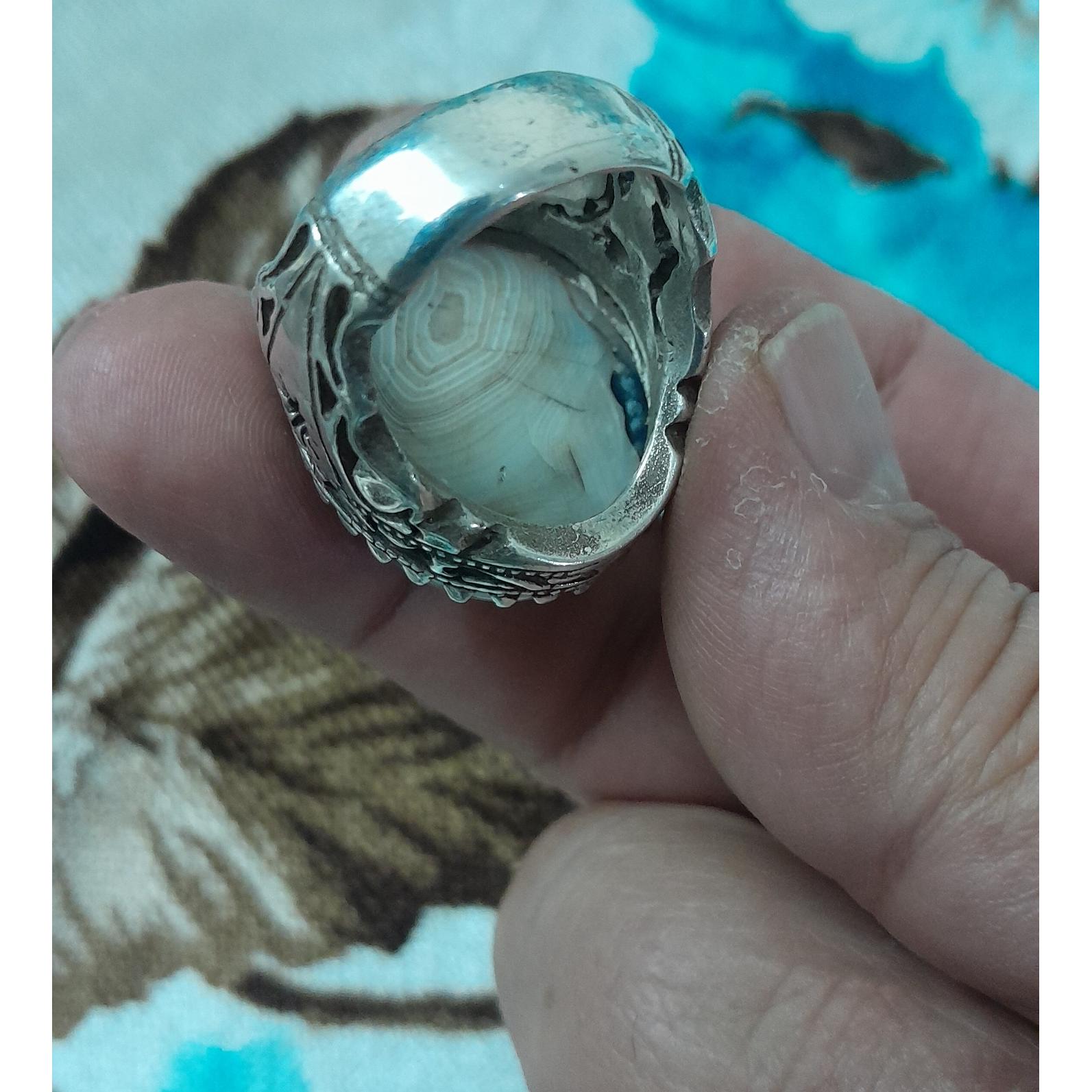 انگشتر نقره عیار 925 نیمه دست ساز با نگین شجر قاین نسبتا درشت قواره وزن26 گرم
