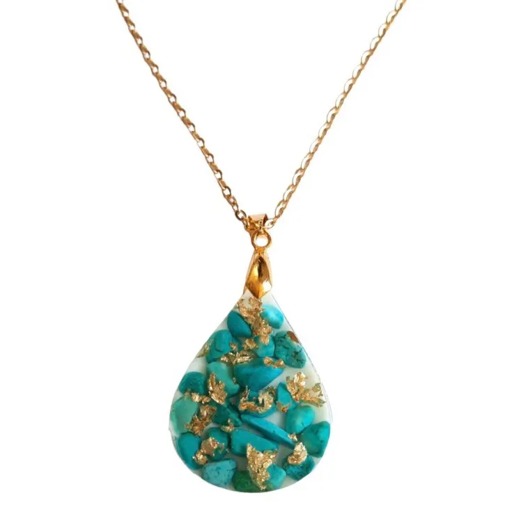گردنبند سنگ فیروزه همراه با تکه های طلا