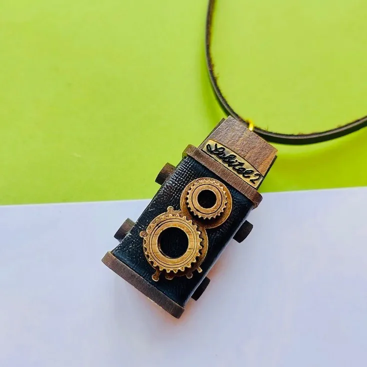 عکاس هستید ؟ یا دوست عکاس دارید؟ این گردنبند بهترین انتخاب برای شماست. گردنبند چوبی که دارای پلاکی زیبا و جذاب طرح دوربین عکاسی مدل قدیمی می باشد و زیبایی دو چندانی به گردنبند بخشیده است. گردنبند به صورت گره ای باز و بسته می شود و می توانید اندازه آن را تنظیم کنید. این گردنبند بهترین گزینه برای دادن هدیه به دوست عکاستان است