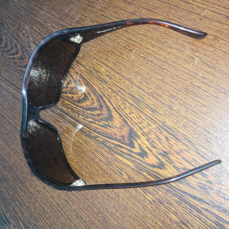 قاب عینک کمی کُهنه است،کیفیت عینک عالی، فریم عینک کائوچو بوده و کنار دسته های آن نگین باکیفیت کار شده،لولای عینک فلزی و ستون فلزی داخل دسته برای استحکام بیشتر دسته قرار داده شده