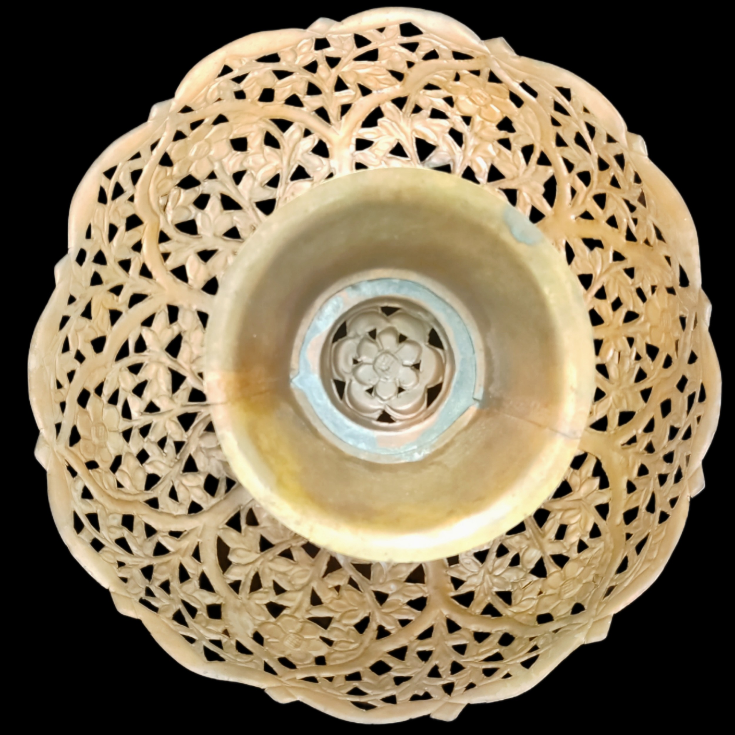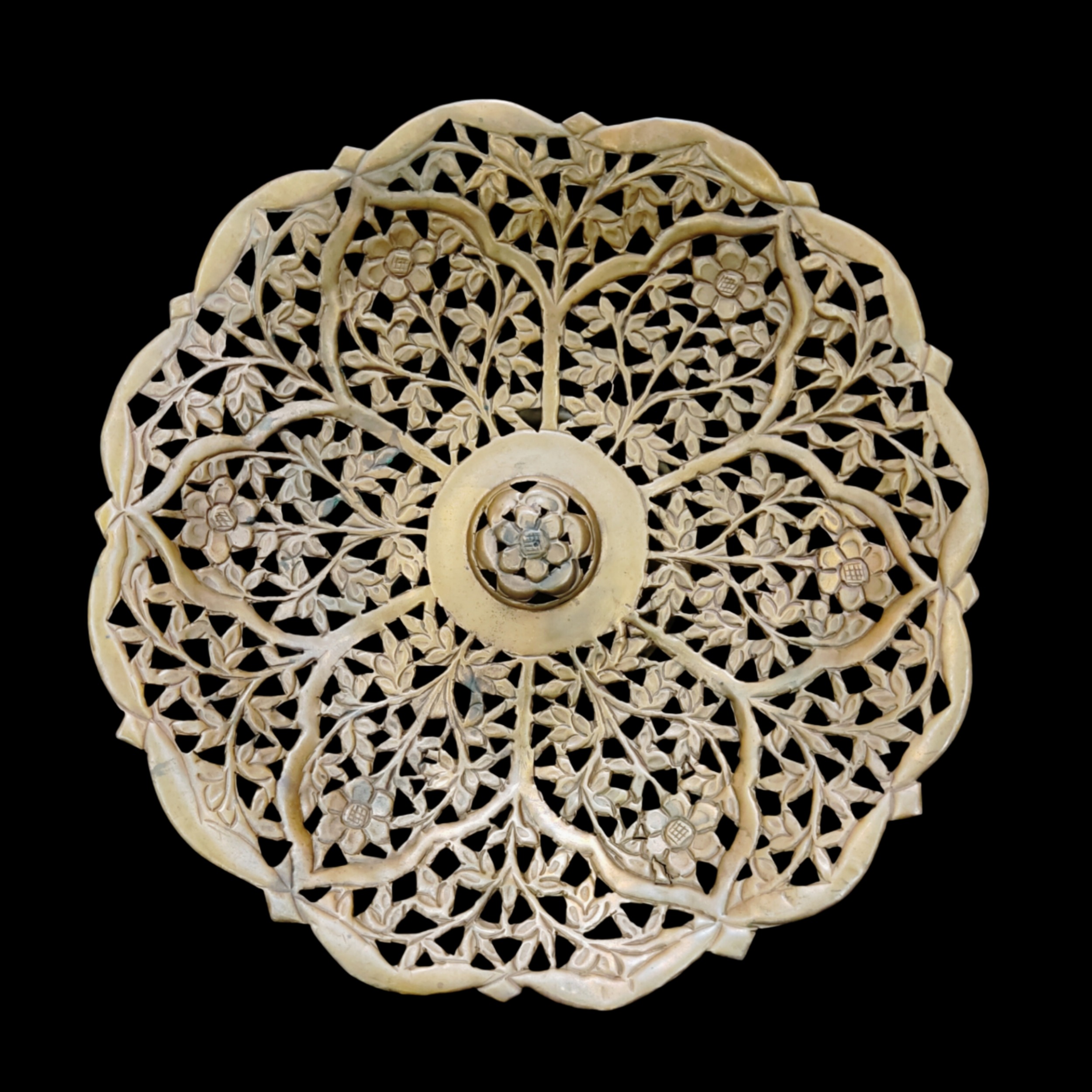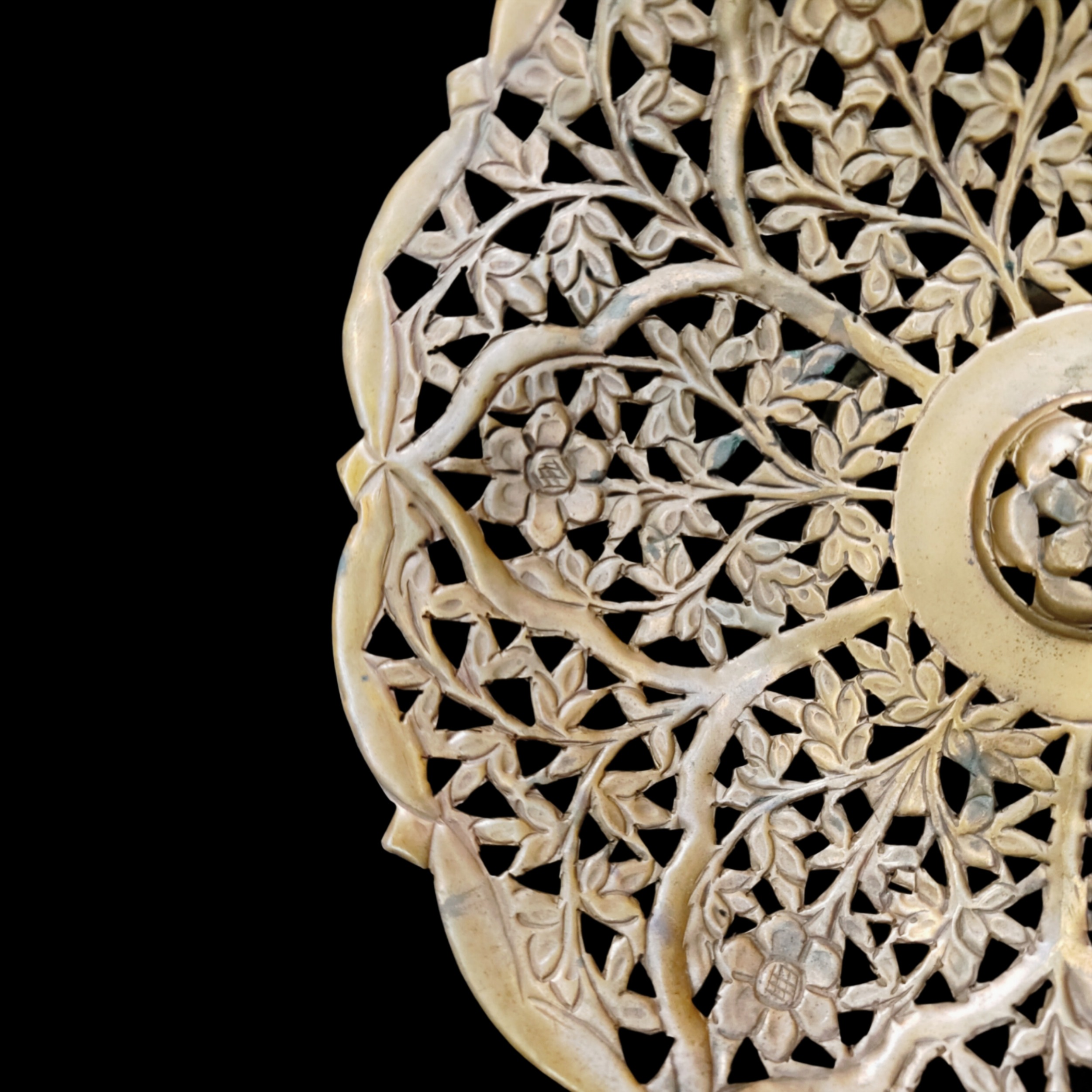 شکلات خوری قدیمی و ساخت آن از فلز مس و قلمزنی و مشبک کاری آن تماما کار دست هست.