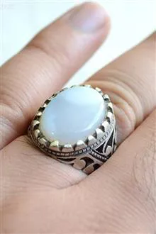 انگشتر نقره عقیق شیری اصل معدنی