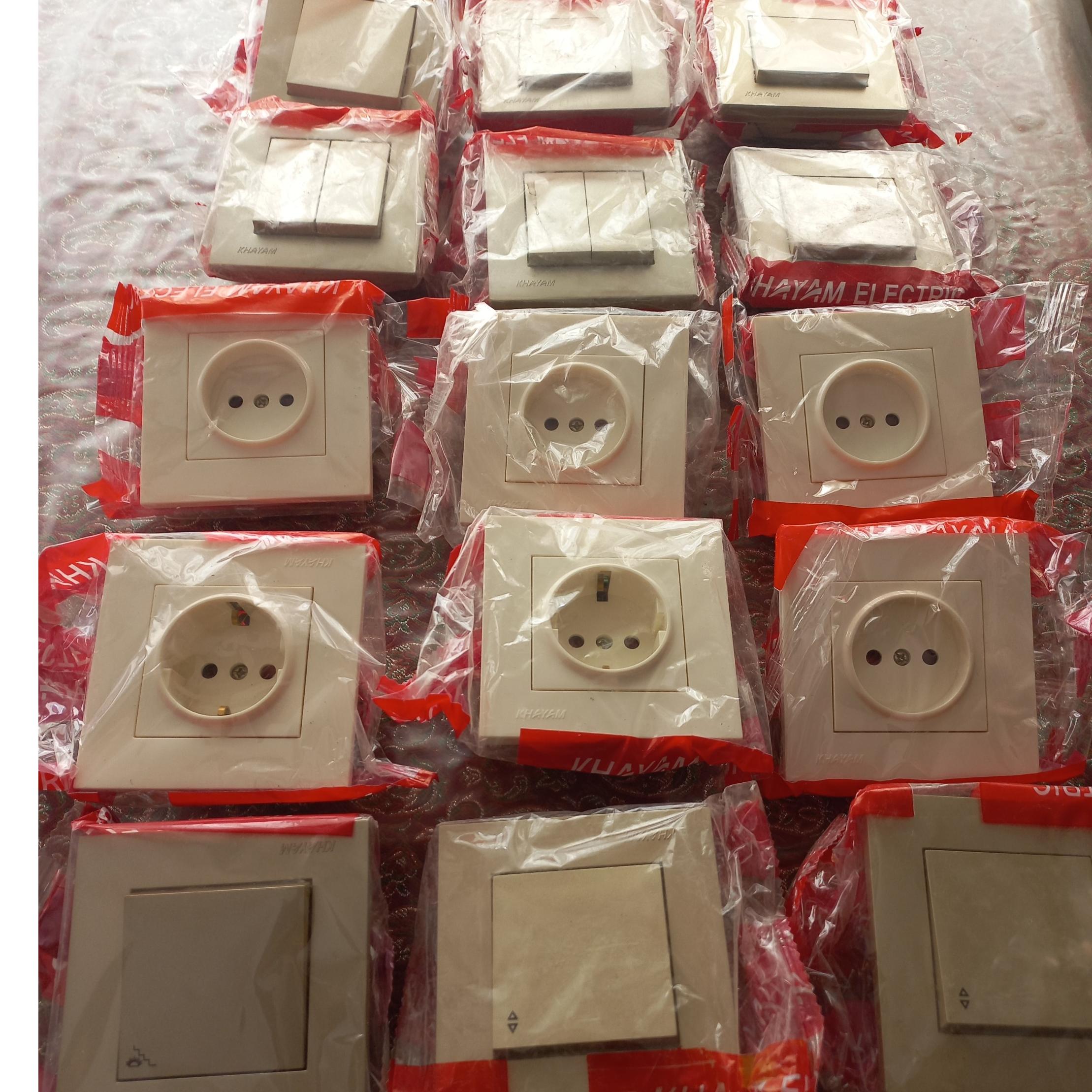 15 عددکلید و پریز تو کار خیام الکتریک جنس مرغوب رنگ کلید ها بژ هستند همه پشت چینی درجه یک .همه نو آکبند و جور هستند .فروش 15 عدد باهم هست.