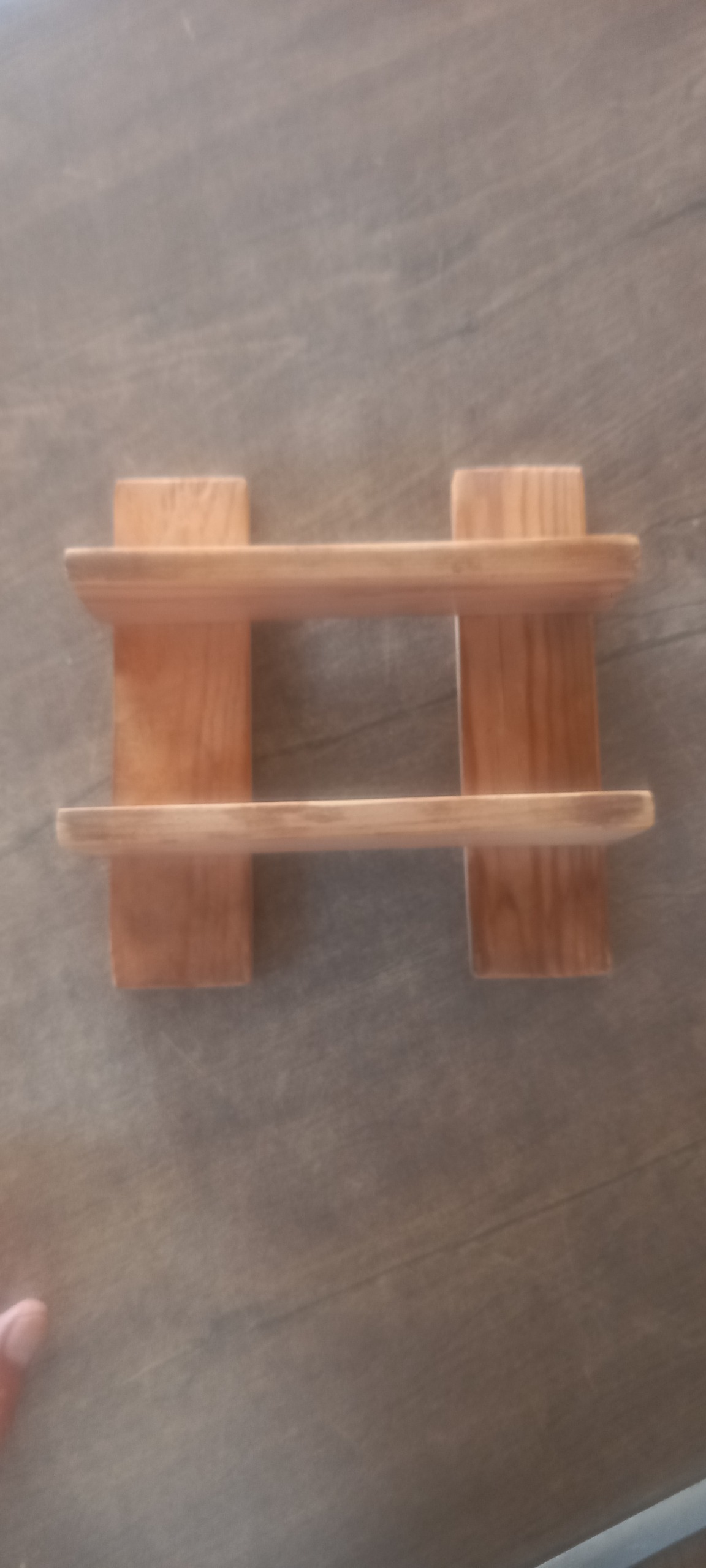 چهار پایه چوبی زیر دیگی سر سفره قدیمی کار کرده ولی در حد نو  ارتفاع حدودا 5 سانت وطول وعرض حدودا 15 سانت با قدمت بیش از هفتاد سال نوستالژی واقعی وانتیک کلکسیونی  از این کالا چون سفره را روی زمین پهن میکردن وسرو غذاحتی در منازل لاکچری هم در سفره روی زمین بود جهت اینکه کف دیگ فرش را کثیف نکند ویااحتمالا نسوزاند از این چهار پایه هااستفاده میکردن  یادش بخیر