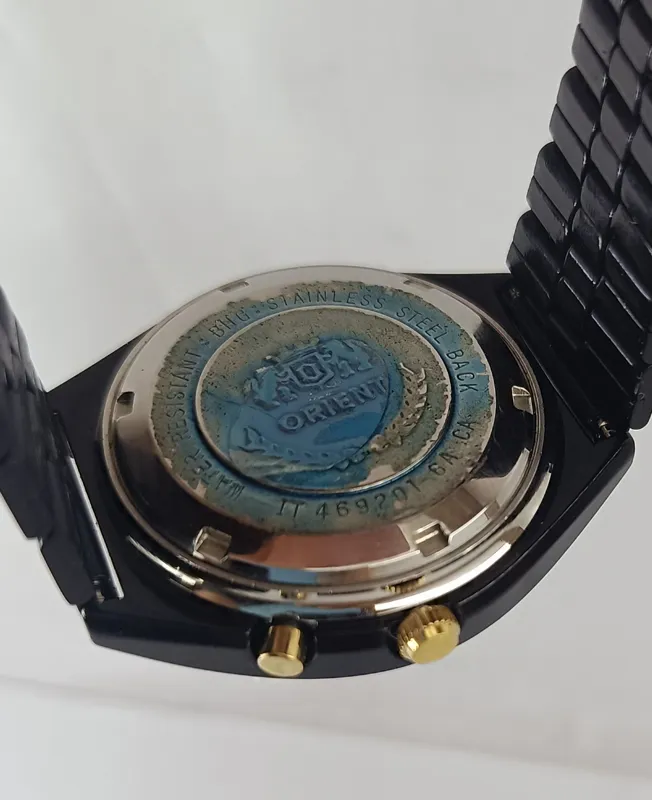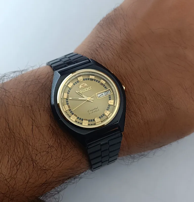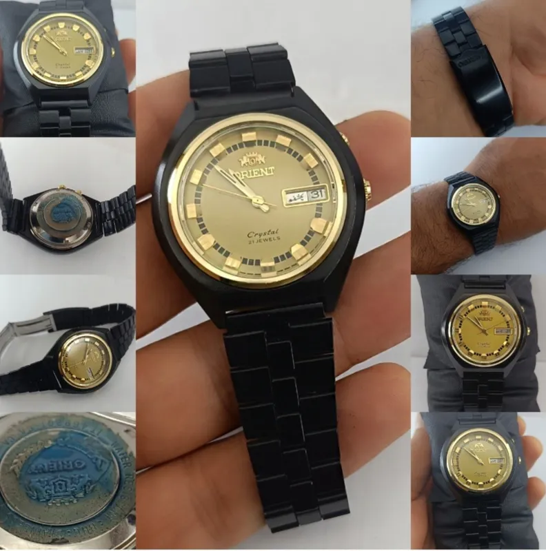 vintage ORIENT japanساعت اورینت اصل ژاپن اتوماتیک 21سنگ jewels نو غیر آکبند ساخت ژاپن . تمام فابریک . تولید دهه70 میلادی . مدل کلاسیک و نوستالژی . سفارشِ ایرانِ قدیم . تقویم روزهای ماه و هفته .انگلیسی_فارسی بسیار کمیاب در طرح و رنگ تقویم پمپی