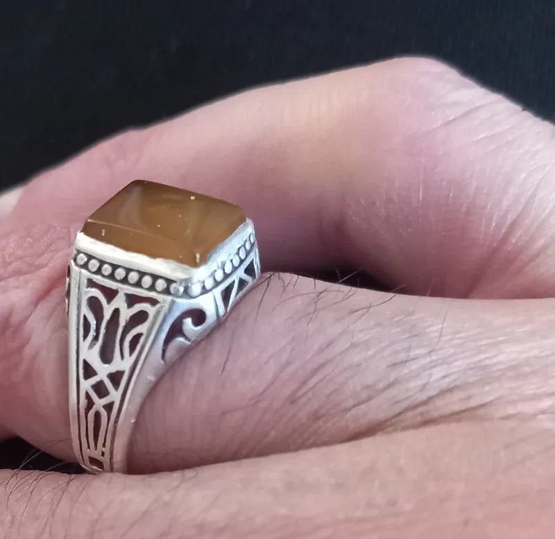 انگشتر نقره عقیق زرد اسپرت مردانه(شرف،شمس)
