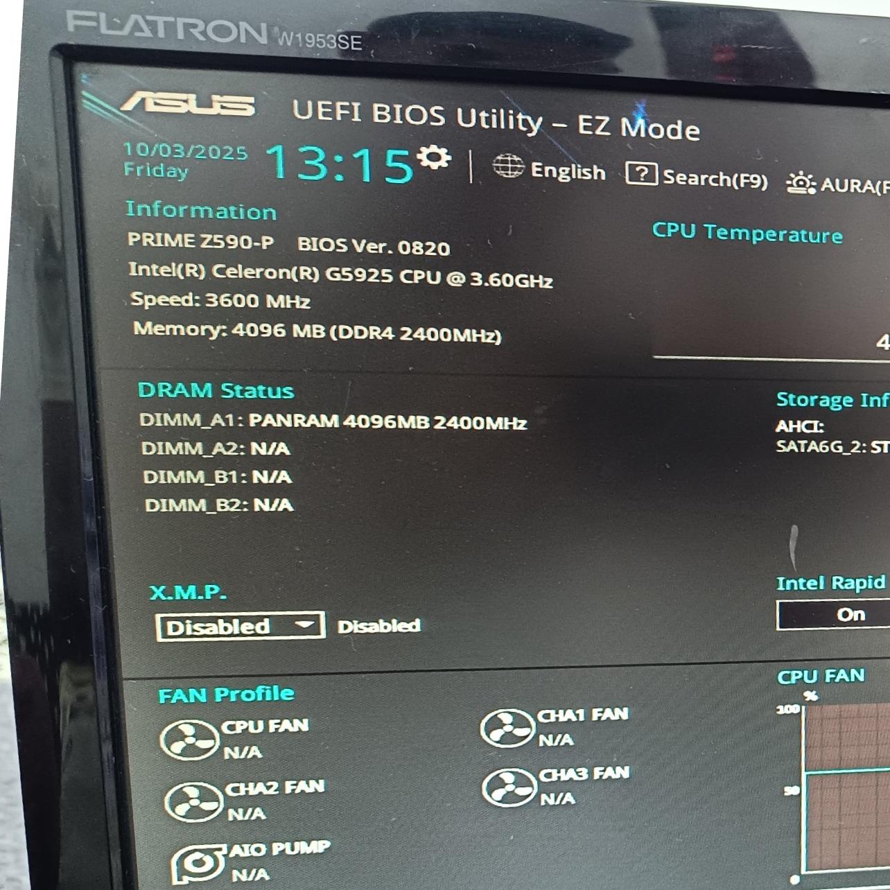 | نسل پردازنده | نسل 10 intel |