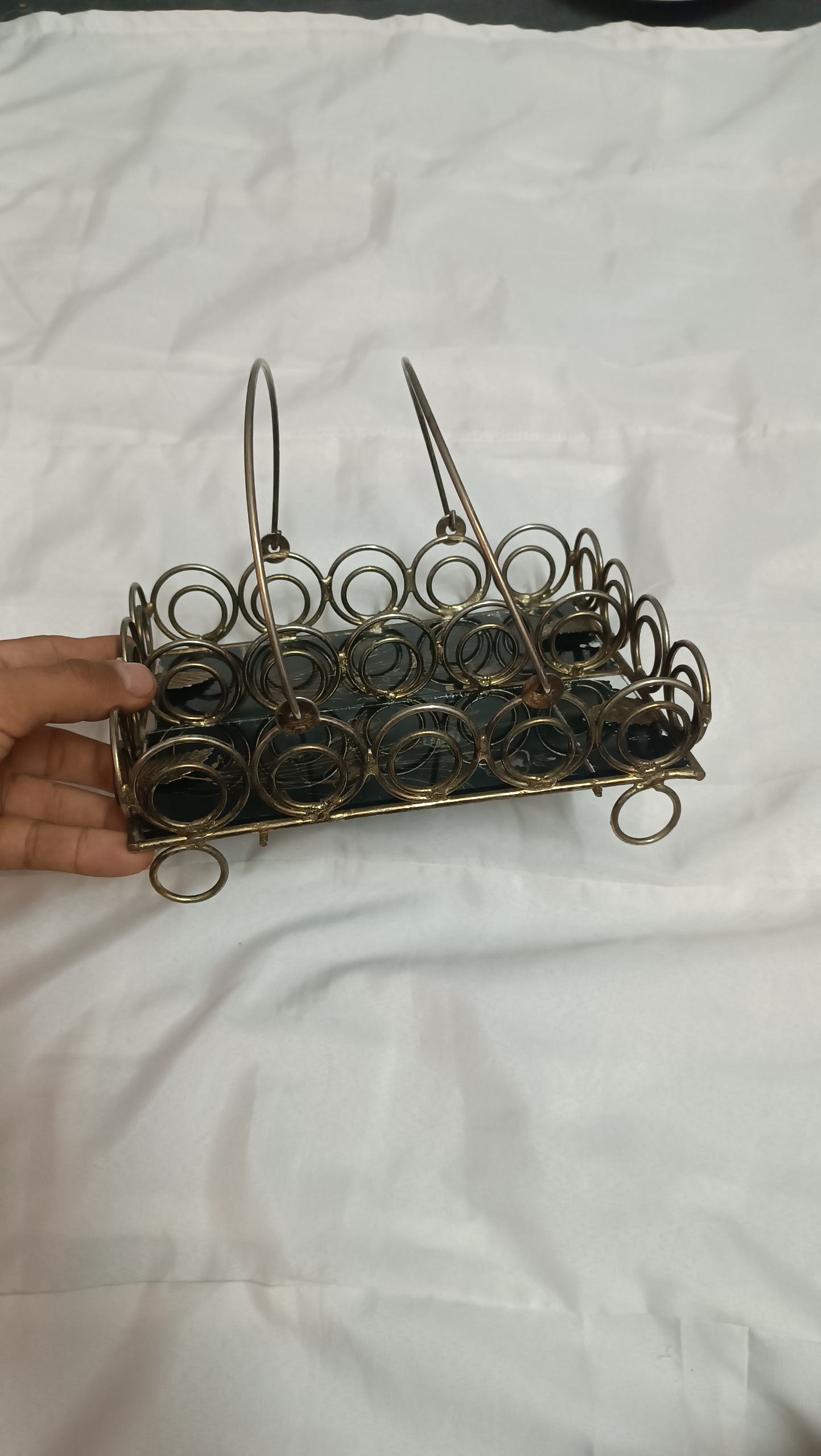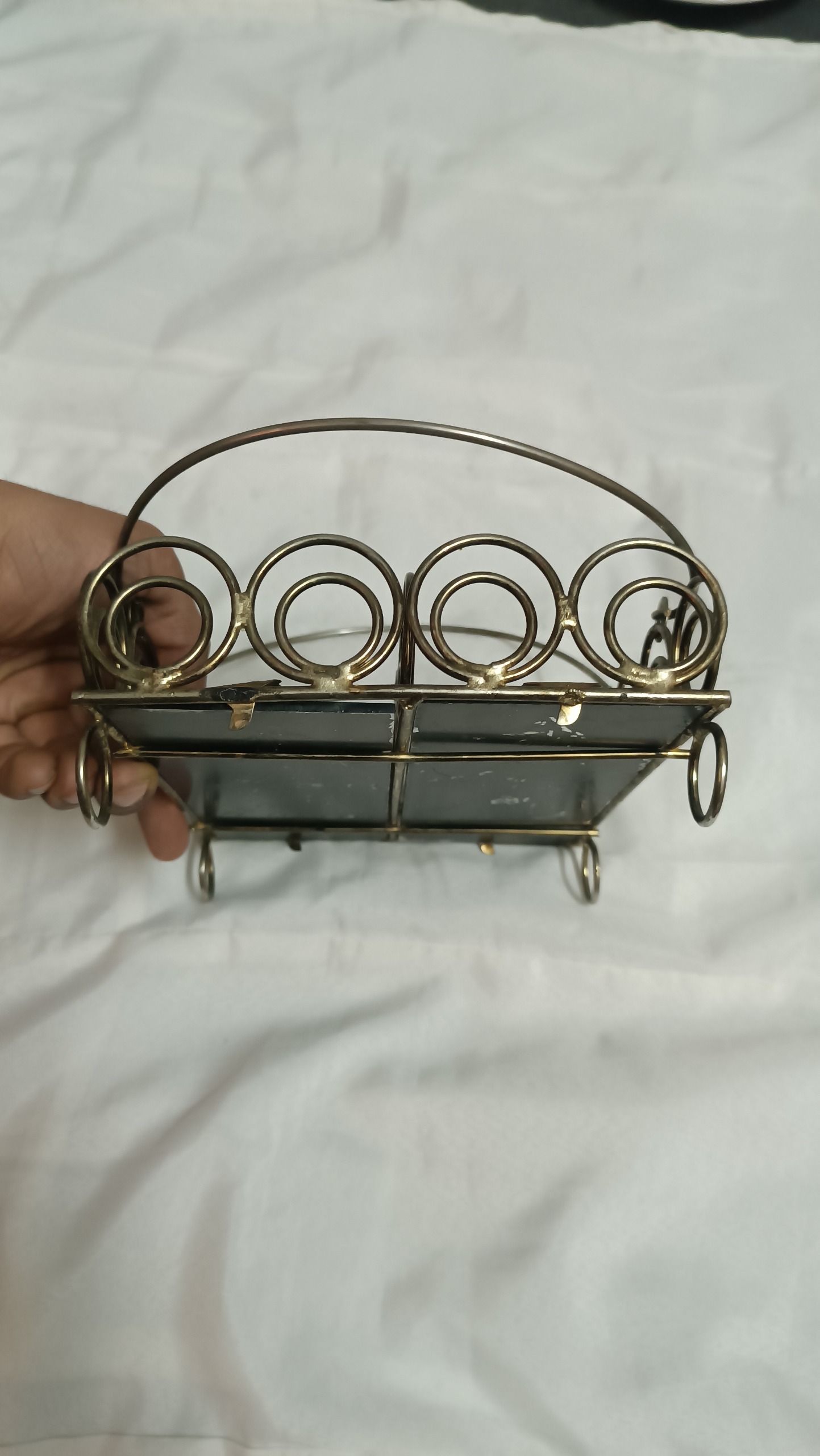 جنس بدنه فلزی کف شیشه هست قسمتهای از رنگ شیشه رفته در خرید دقت کنید مرجوعی ندارم