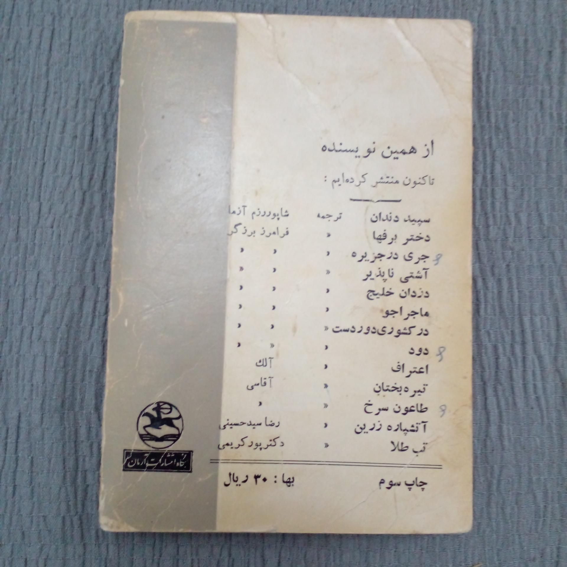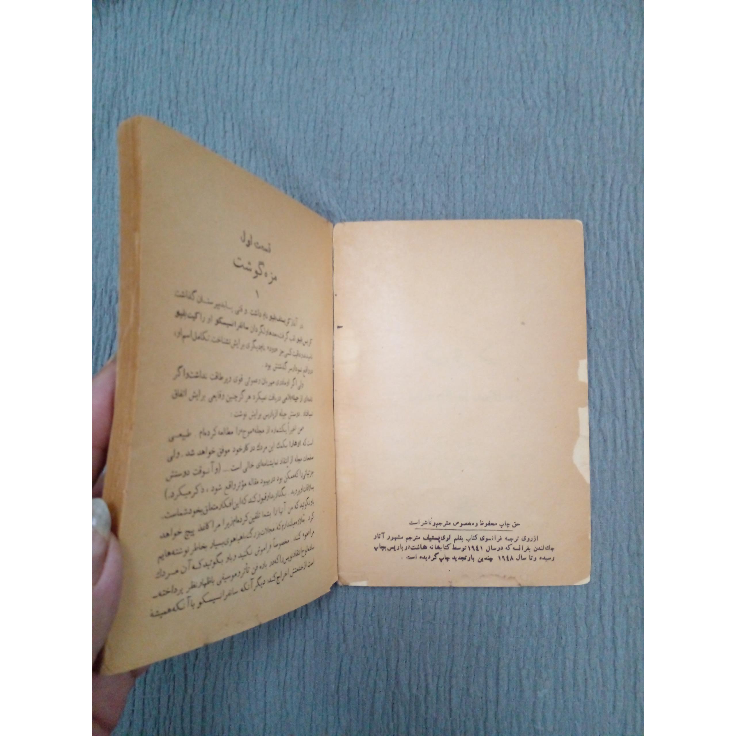 جلدشومیز.بسیارقدیمی .چندصفحه پارگی درلبه کتاب دارددرتصویرمشخصه