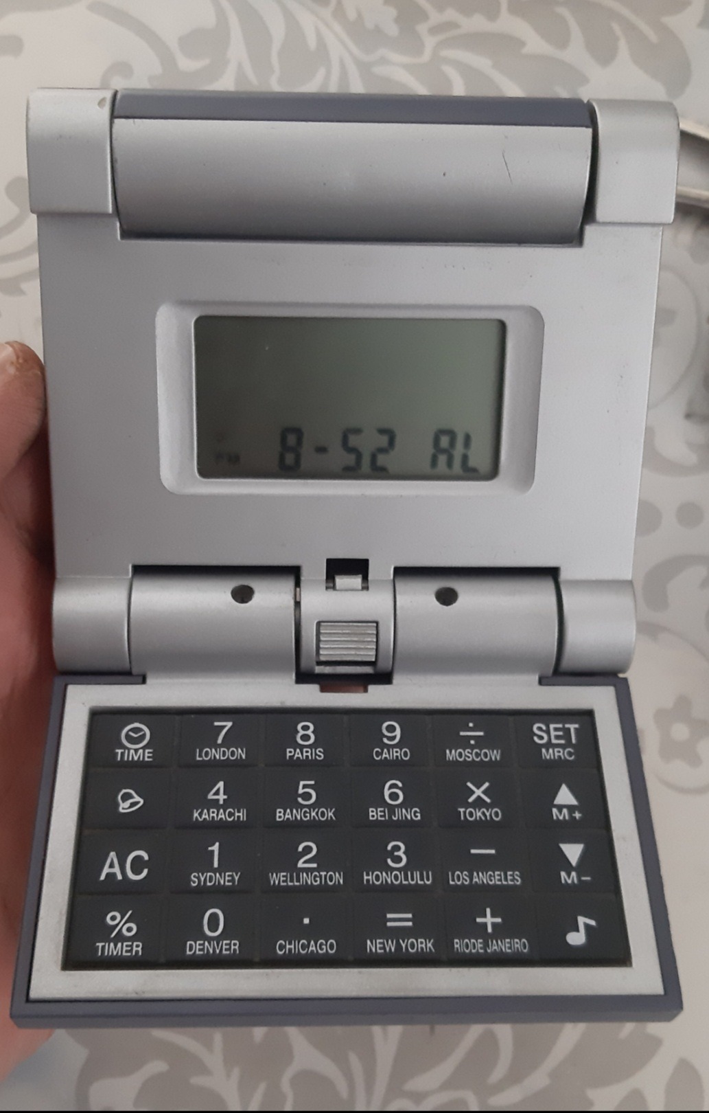 قابلیت تاشو و جمع و جور دارای ملودی تنظیم زمانبا صدای خوب و آرام و همچنین ماشین حساب با قابلیت صدا و بدون صدا و تنظیمات دیگه،ساخت چین و باکیفیت هست