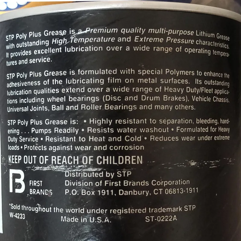 گریس STP پلی پلاس، یک گریس با کیفیت ممتاز با مقاومت حرارتی و حرارتی بالا است. این گریس روانکاری عالی را در طول عمر و سرویس ارائه میدهد.