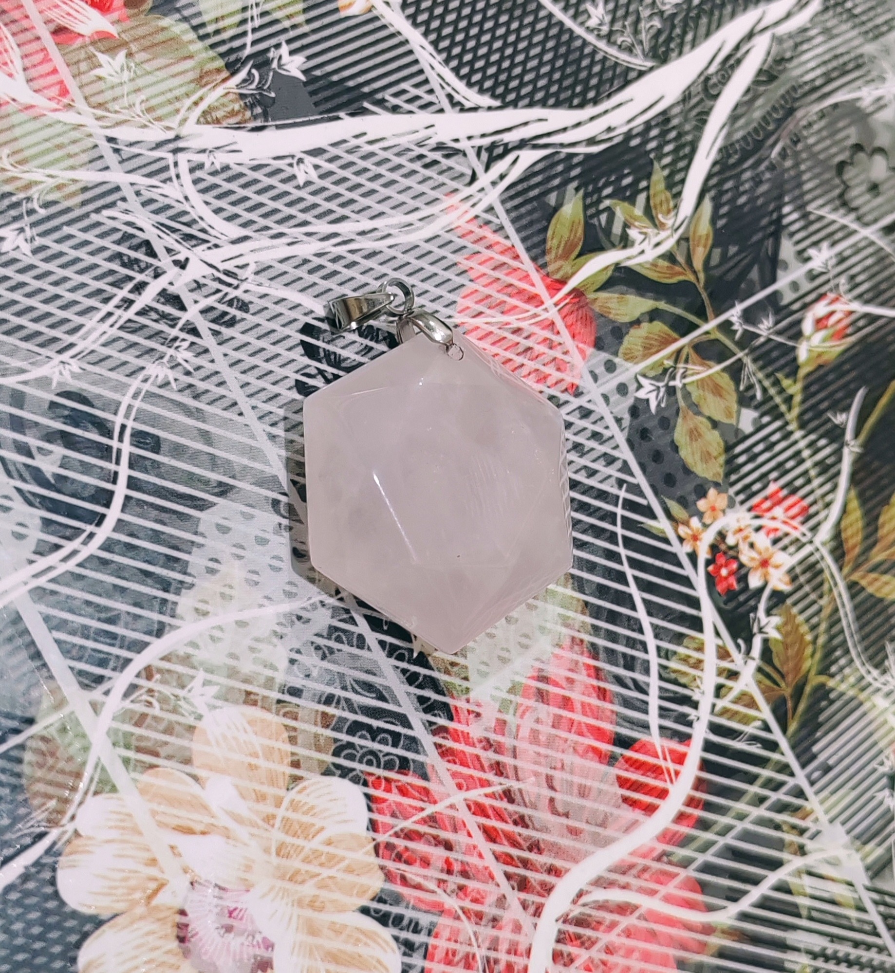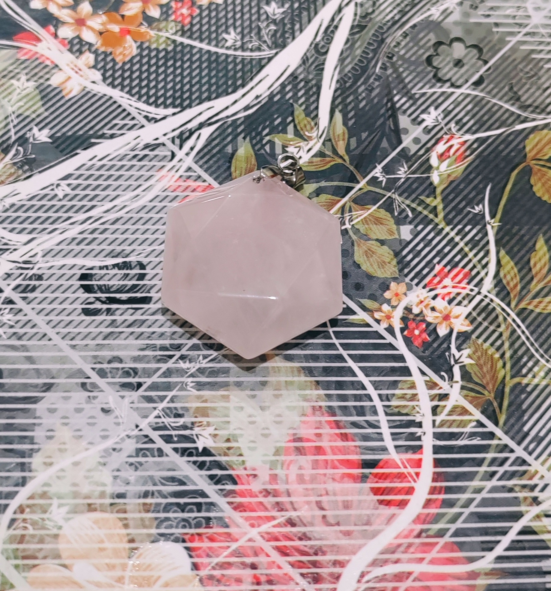 آویز سنگ رز کوارتز 6 ضلعی سکه ای معدنی
