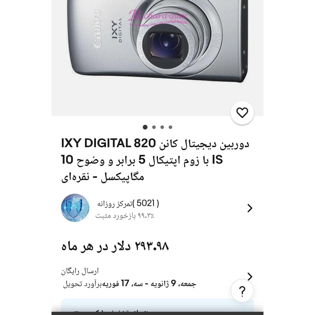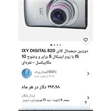 Canon IXY DIGITAL 820 IS Silver ,10MP,5x,f/3.2,2.5inch from Japan Canon USEDCanon IXY DIGITAL 820 IS دارای سنسور CCD 1/2.3 اینچی (~ 6.16 x 4.62 میلیمتر) است که قطر آن