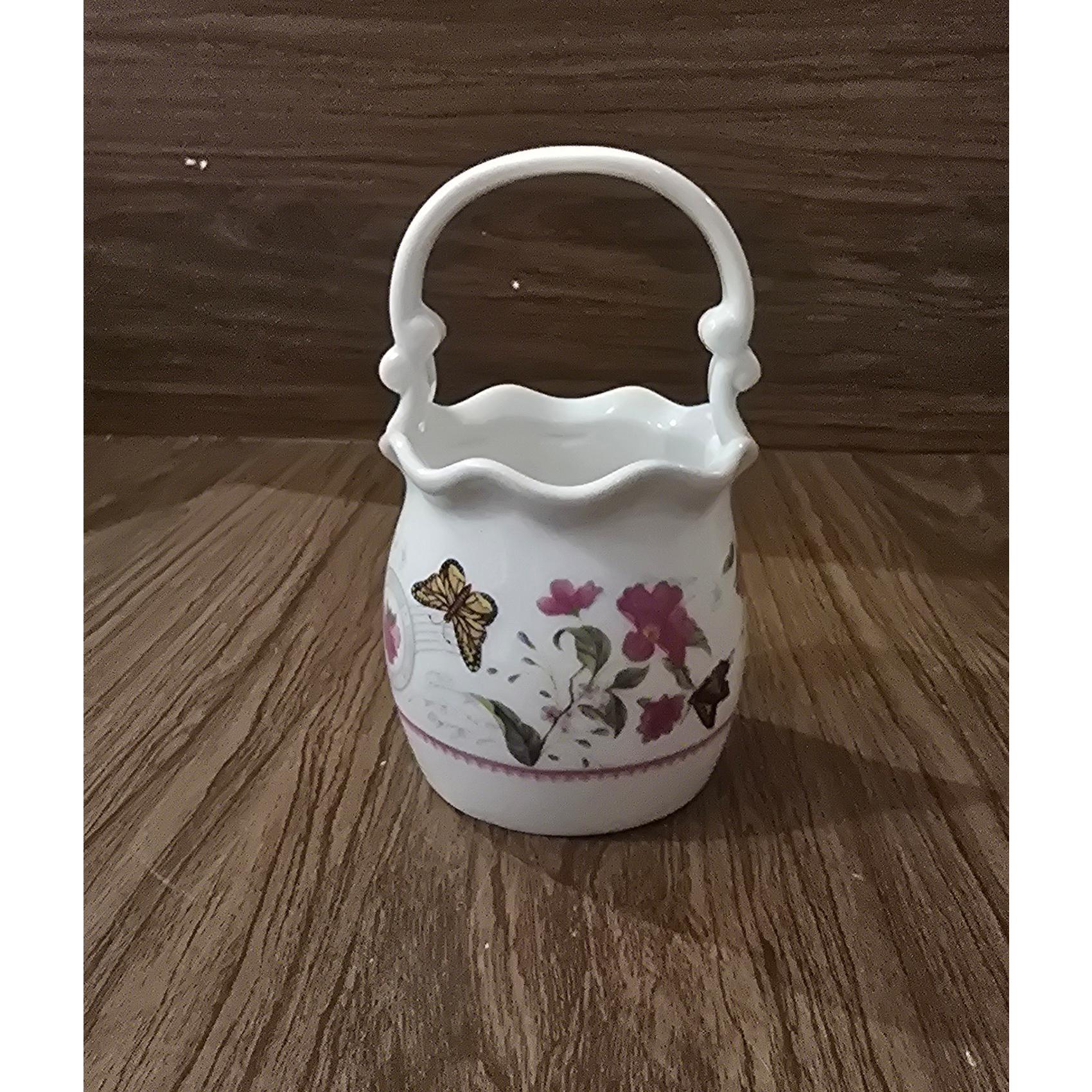 گلدان یا جا کاردی دورو گل زیبا . کلکسیونی و کاربردی . ارتفاع تا بالای دسته حدودا 14 سانت