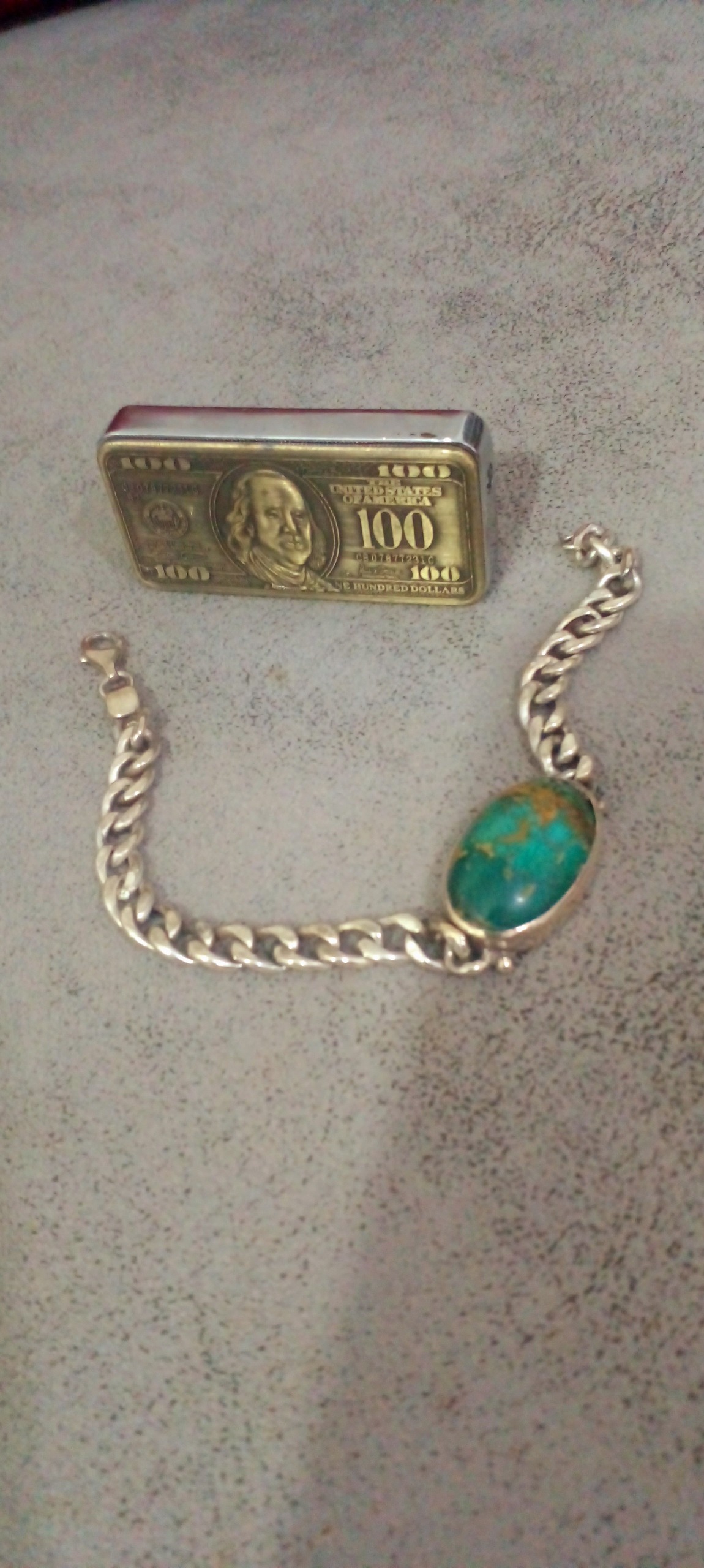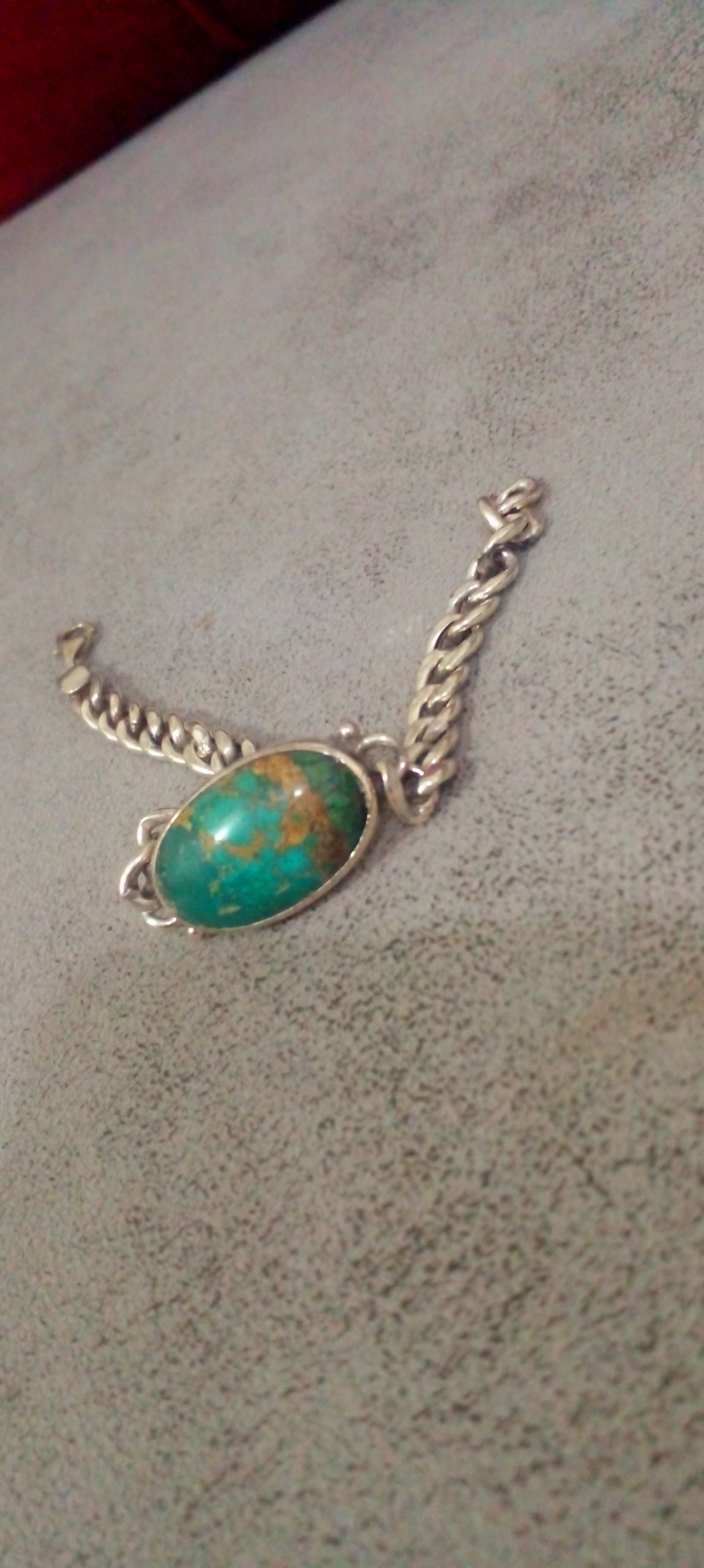 دستبند نقره با سنگ فیروزه اصل طول دستبند 23 سانت و وزنش 19 گرم. این دستبند سفارشی ساخته شده و تو نقره فروشیا نیست