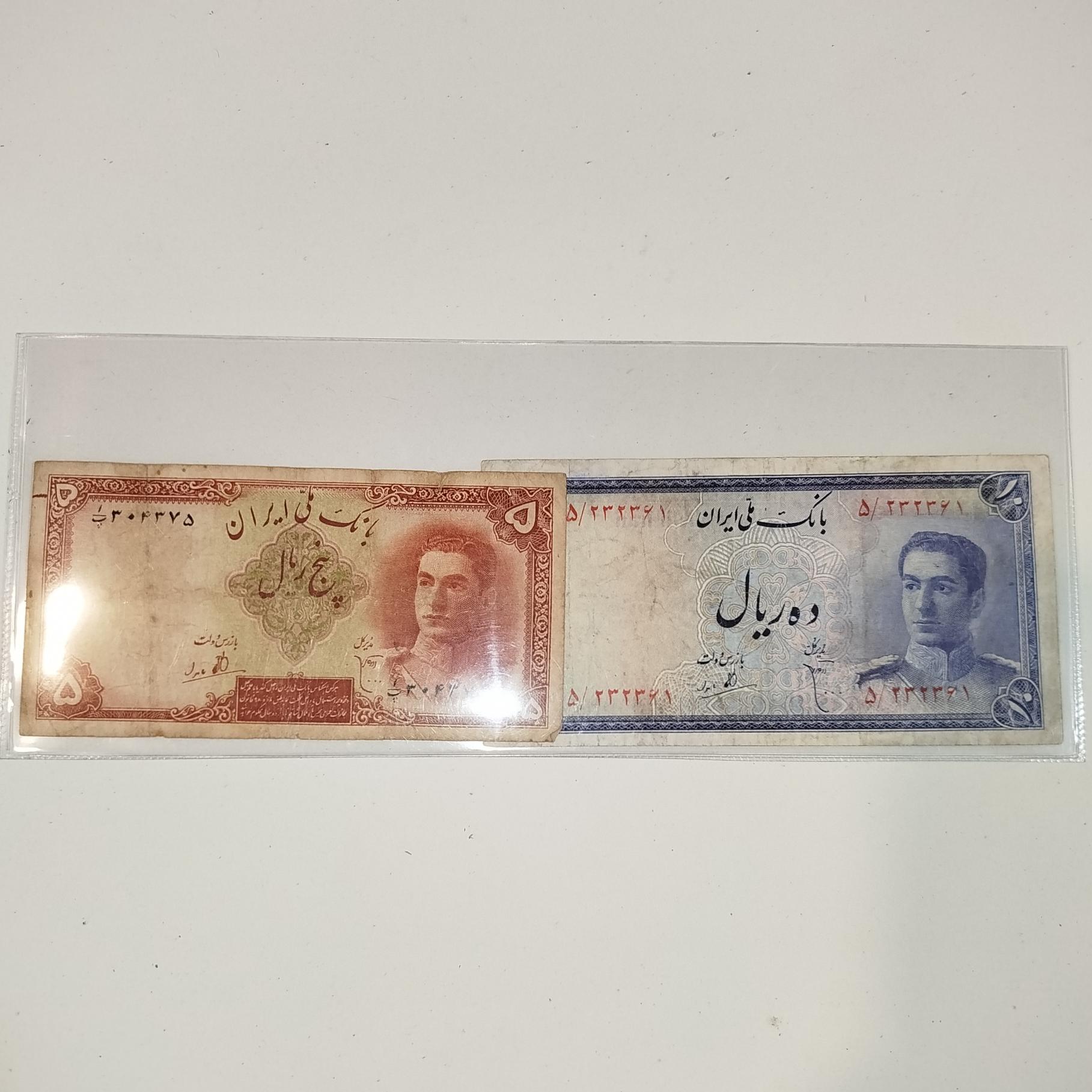 دو برگ پنج و ده ریالی سری اول پهلوی