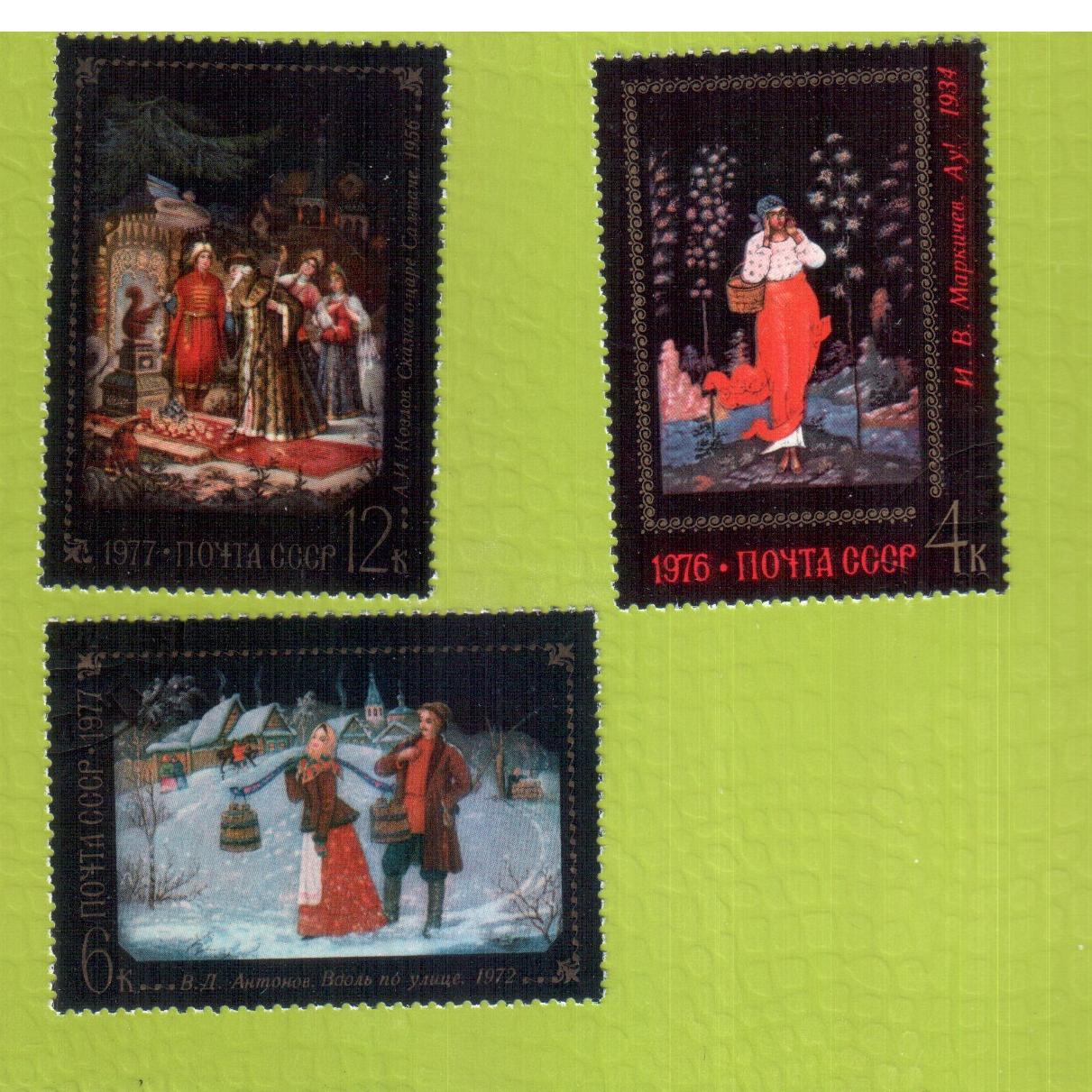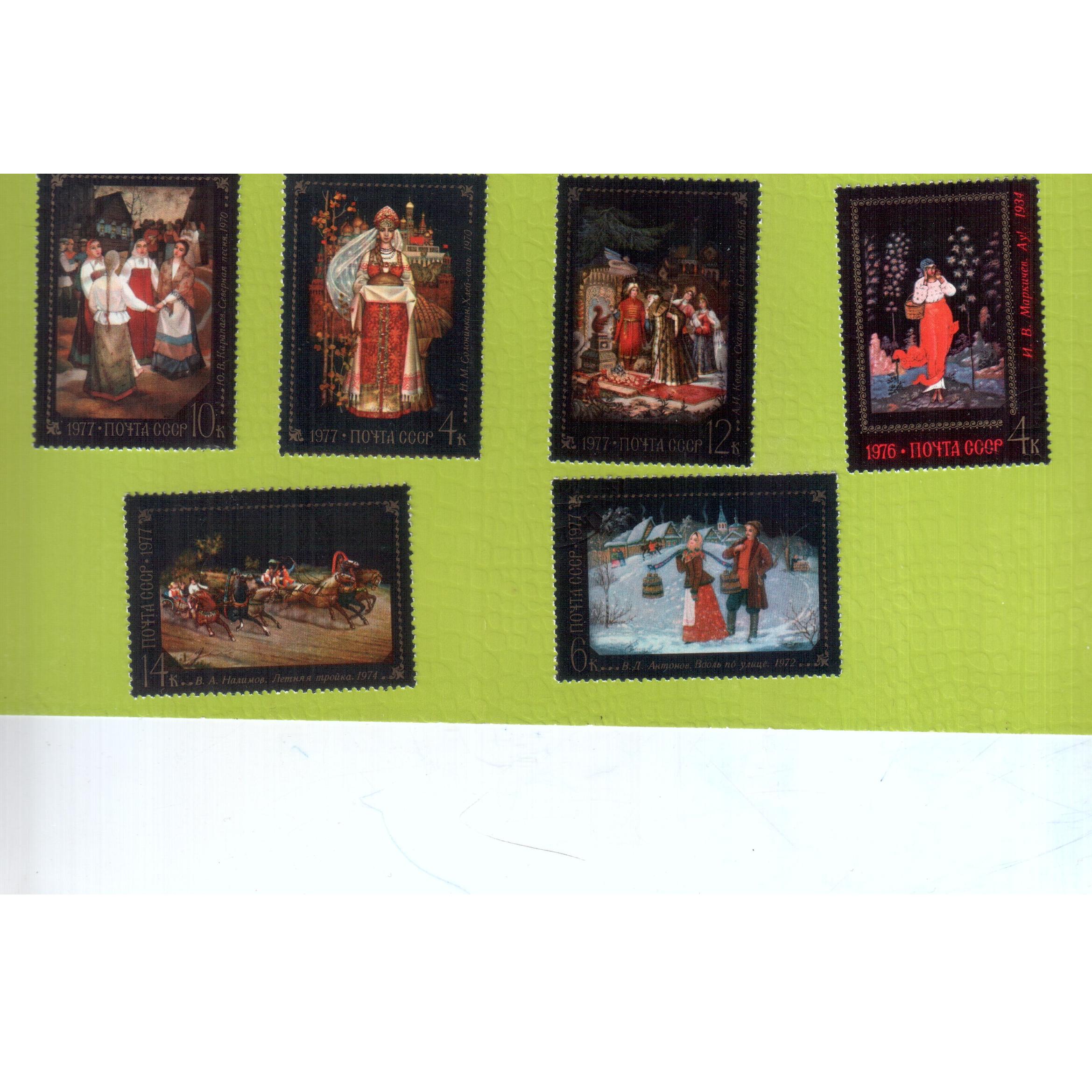 تمبر های کلکسیونی چاپ کشور روسیه با تابلوهایی از هنرمندان بزرگ روسیه با موضوع زمستان و کریسمس