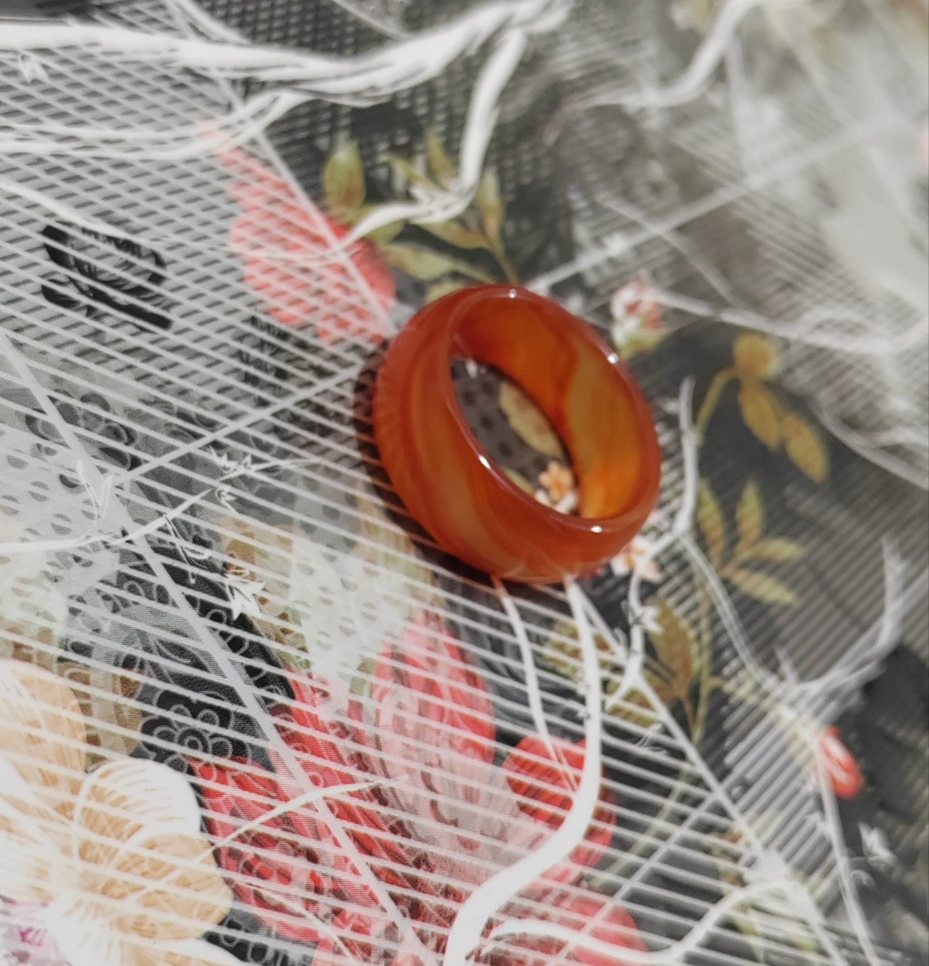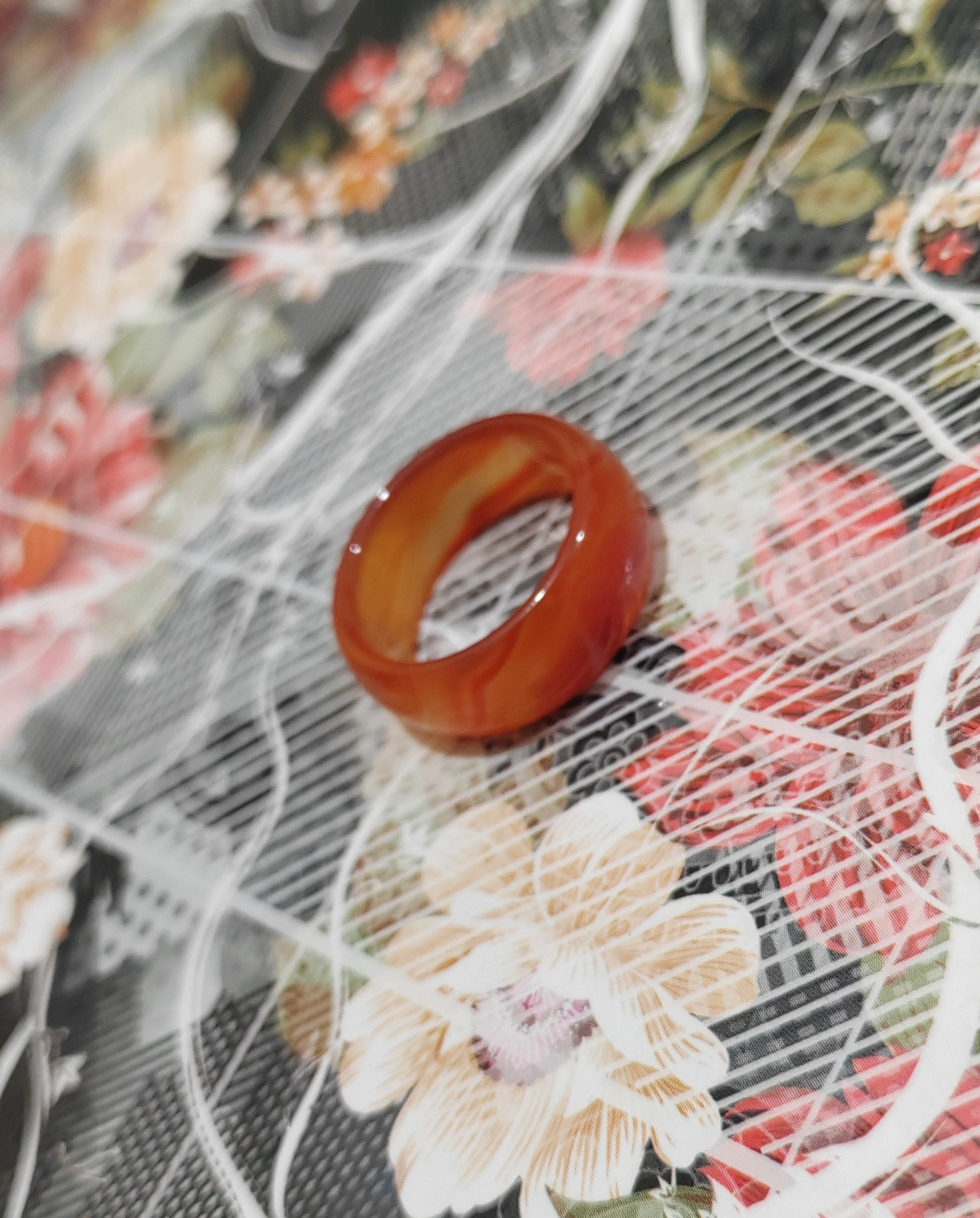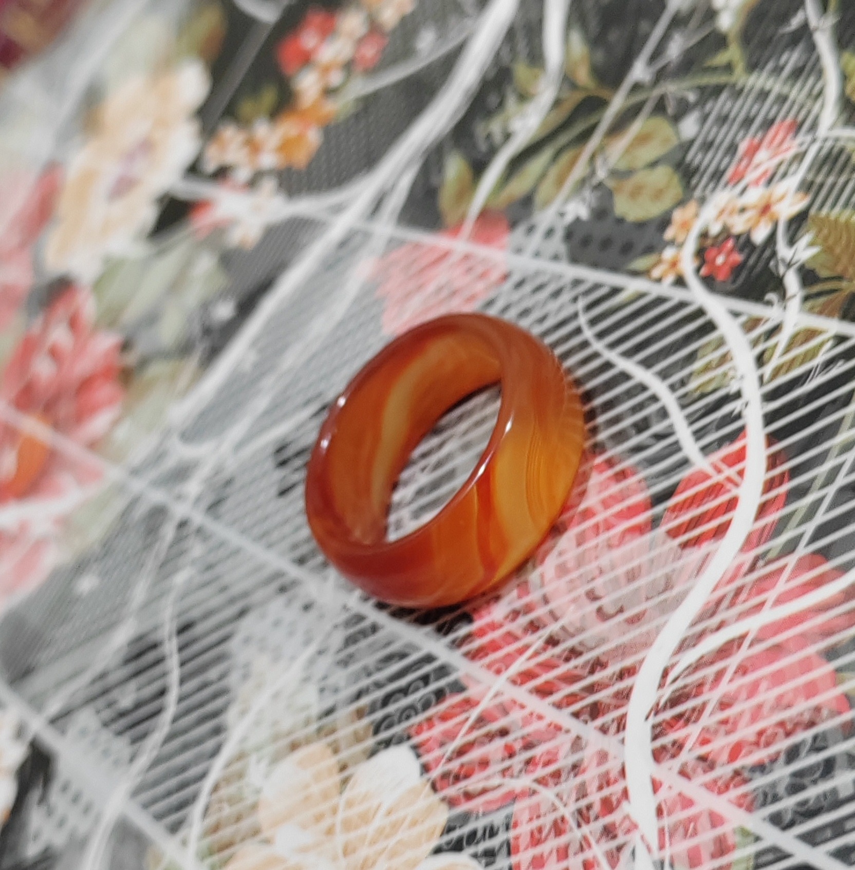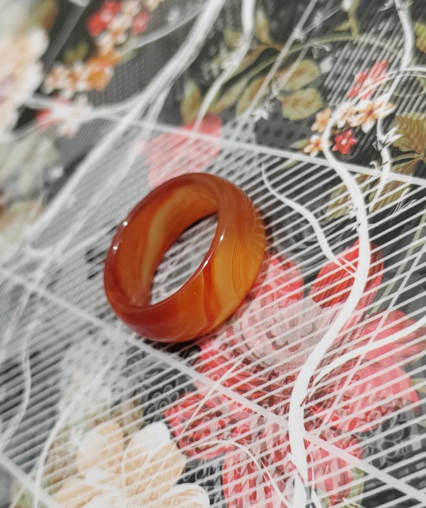 حلقه عقیق پهن پرتقالی رگه دار سایز 9 کد 4
