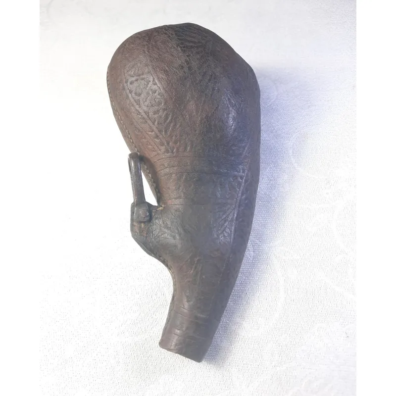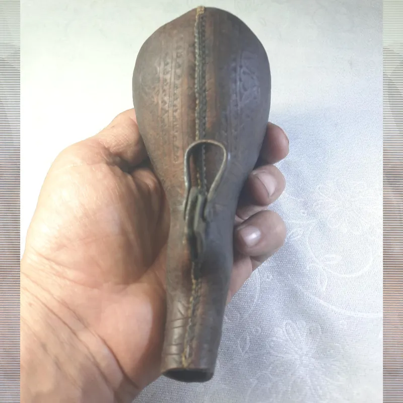 باروت دان چرمی قاجاری نقشدار قدیمی