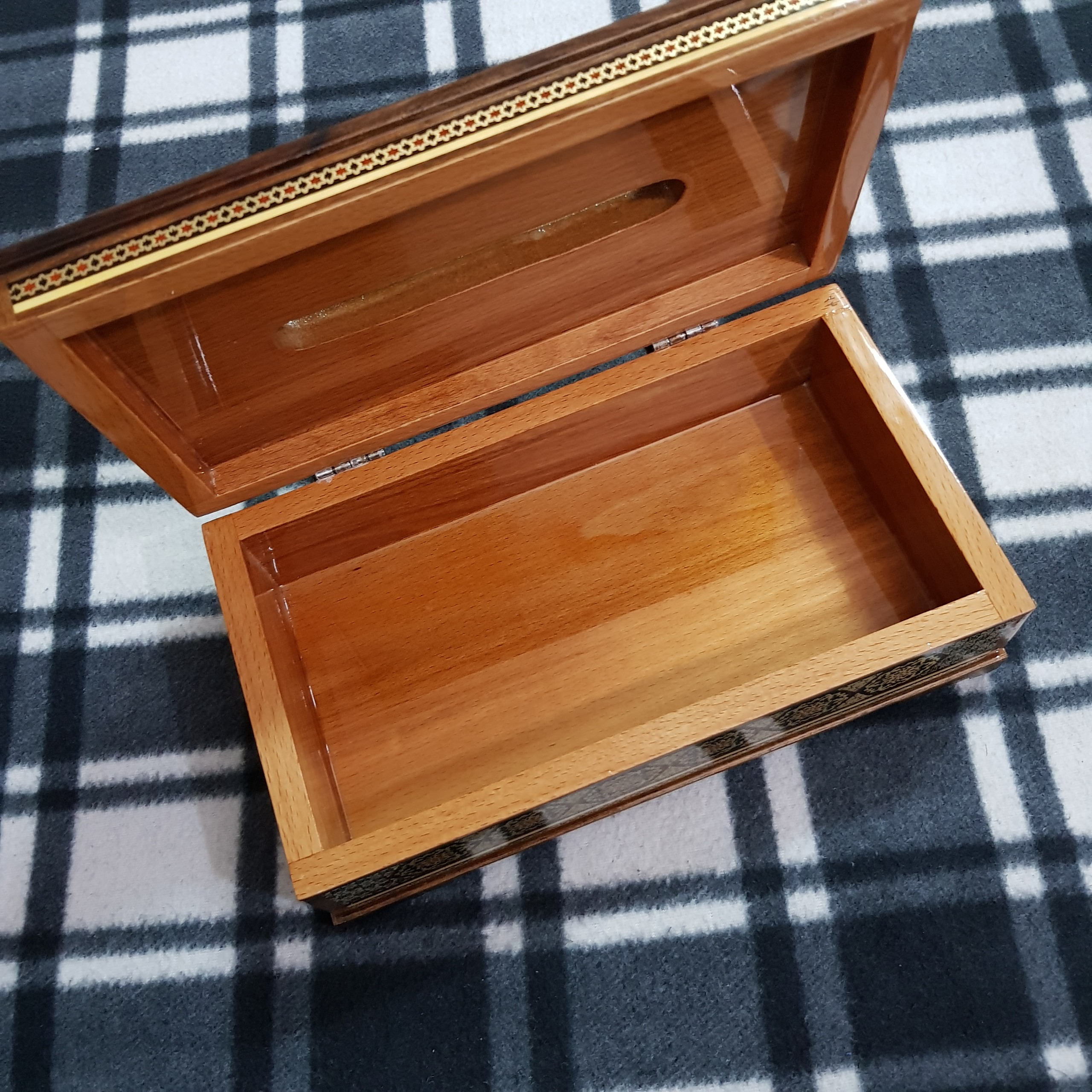 ابعاد جعبه حدود 26.5 در 15 سانتیمتر و ارتفاع حدود 9 سانتیمتر است.