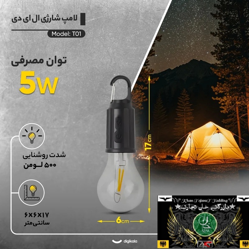 - لامپــــ شارژی کـمپـینـگـــ  Sun T01 نشکن و( ضــدآبــــ،ضدضربـه)