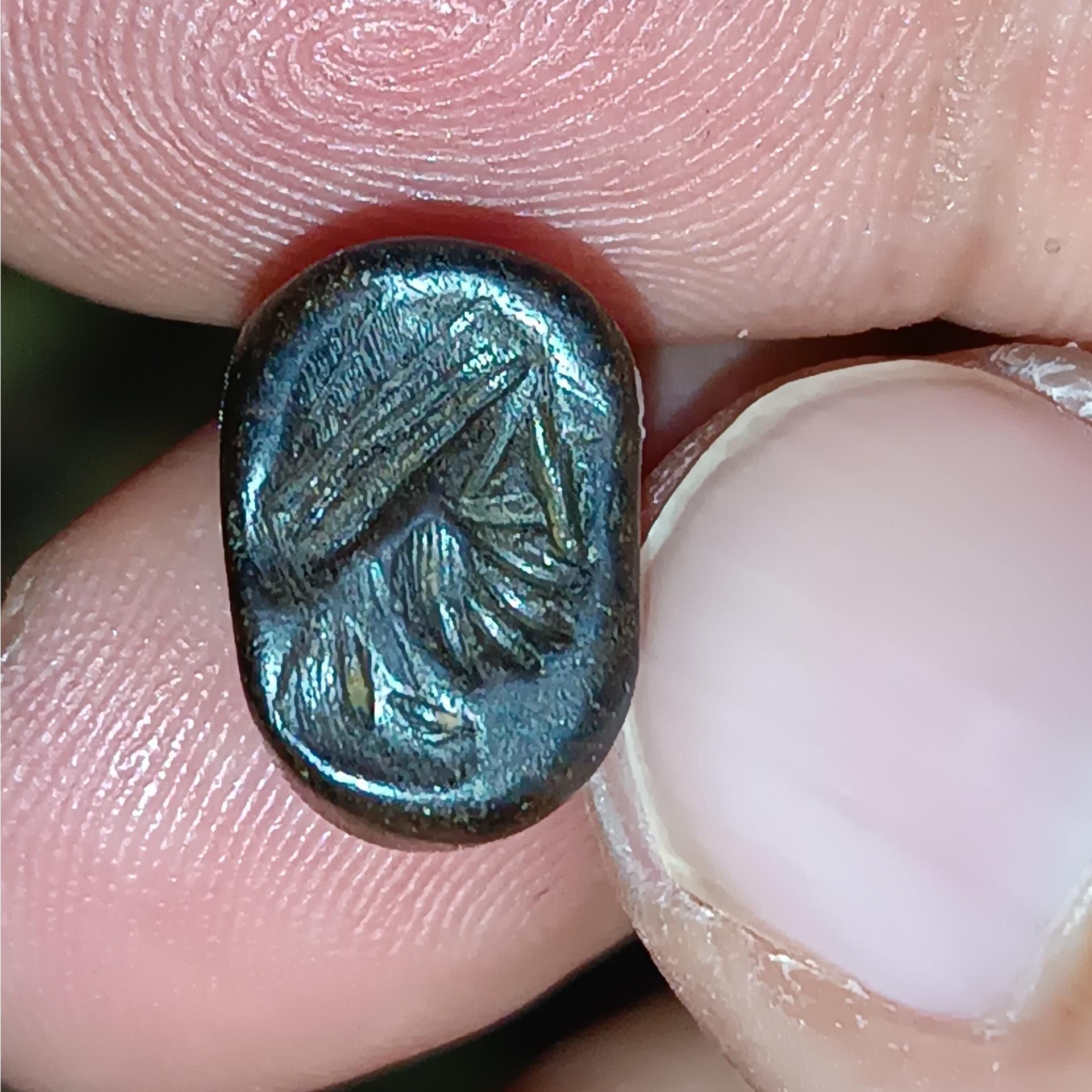 مهره از جنس سنگ حدید طبیعی نقش صورت انسان ،بسیار قدیمی و انتیک