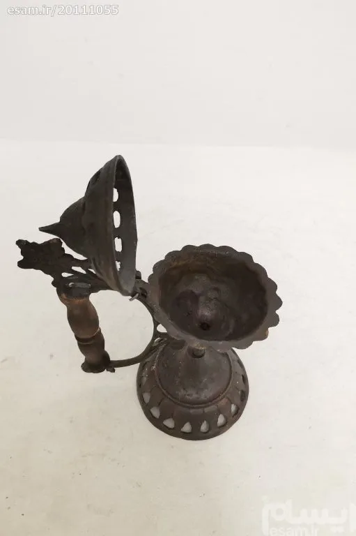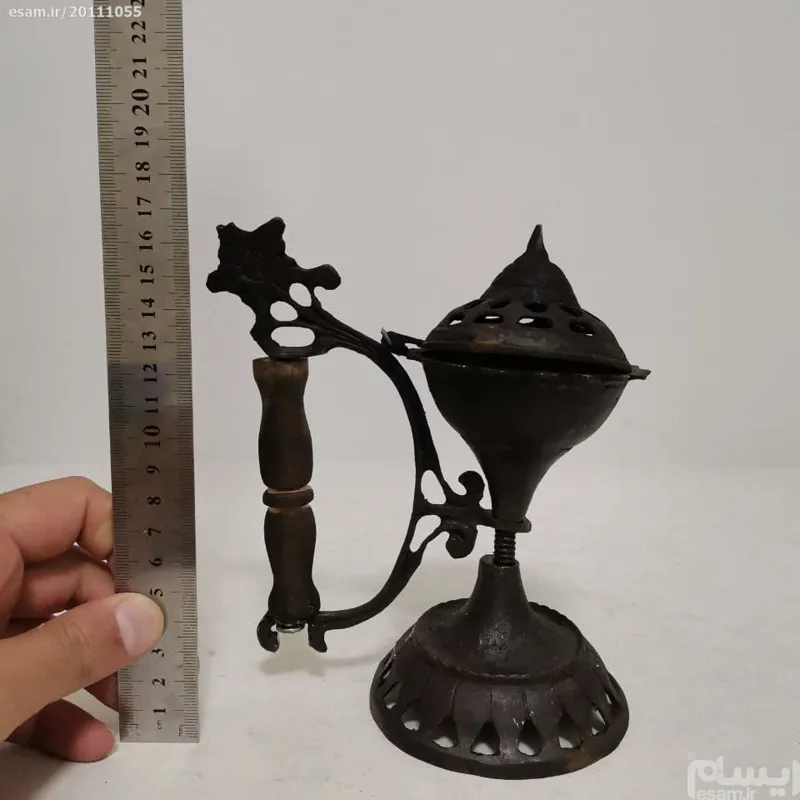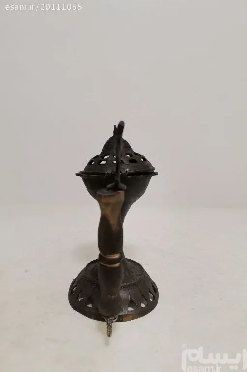 جا اسپندی برنجی طرح قدیم قابل استفاده و دکوری ارتفاع 17/5 سانت طول 15 سانت عرض 9 سانت وزن 550گرم ساخت ایران
