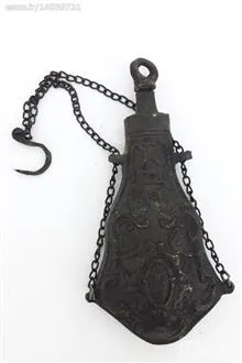باروت دان برنجی نقش برجسته طرح قدیم