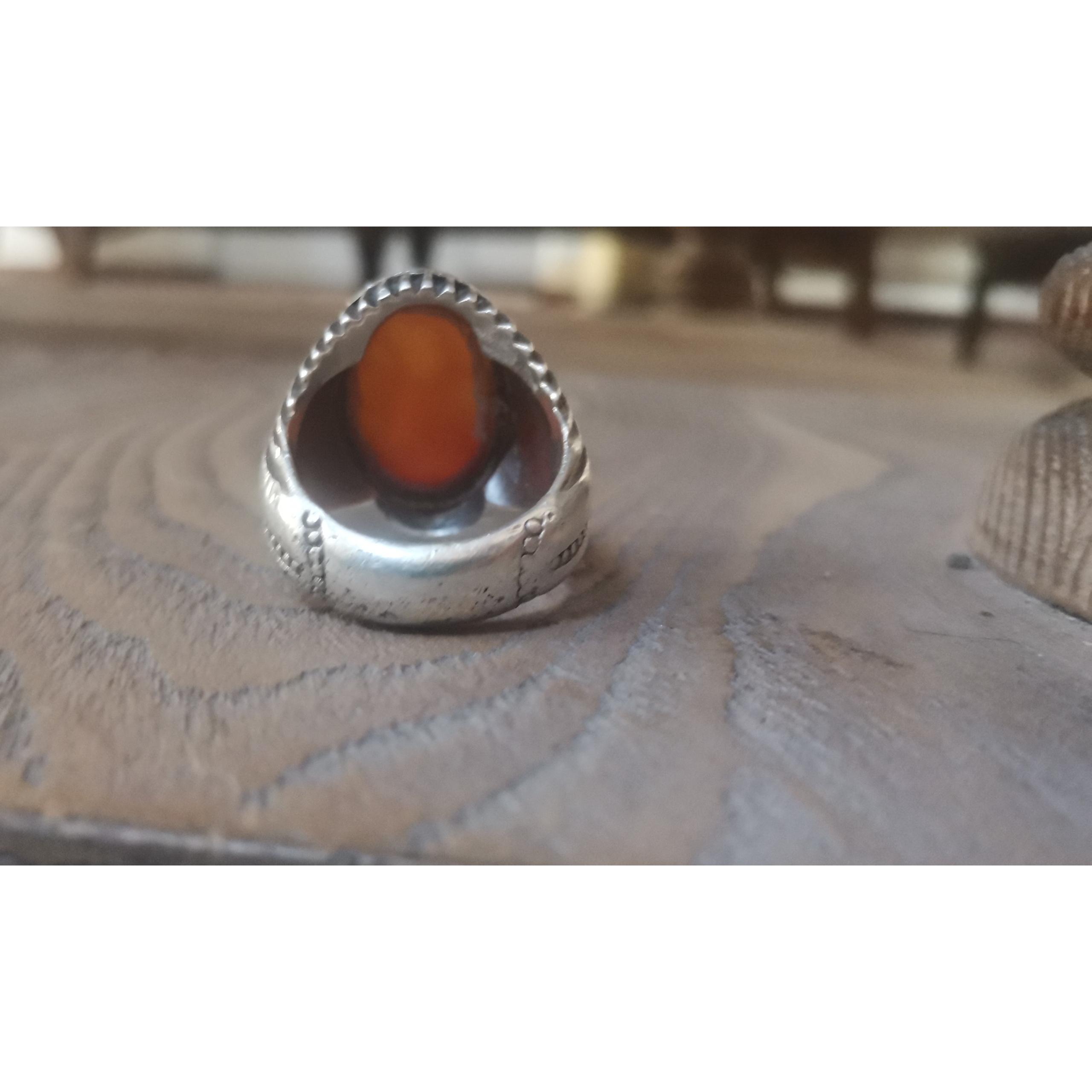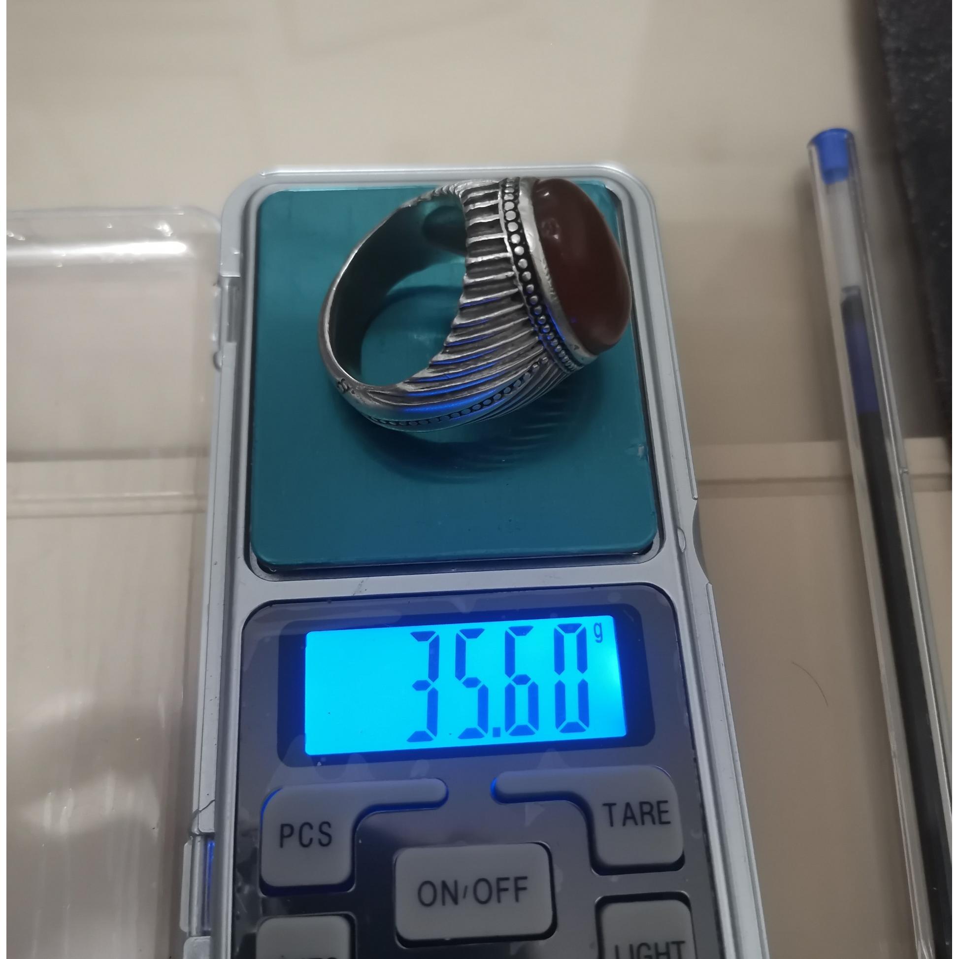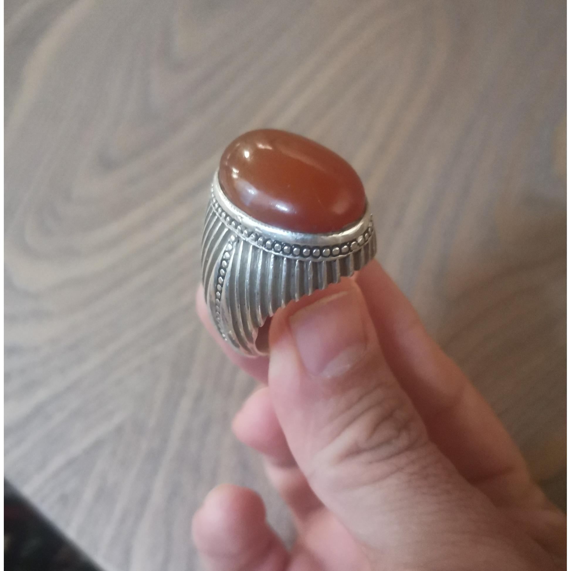 انگشتر نقره سنگین با عقیق کهنه با ارزش شفاف
