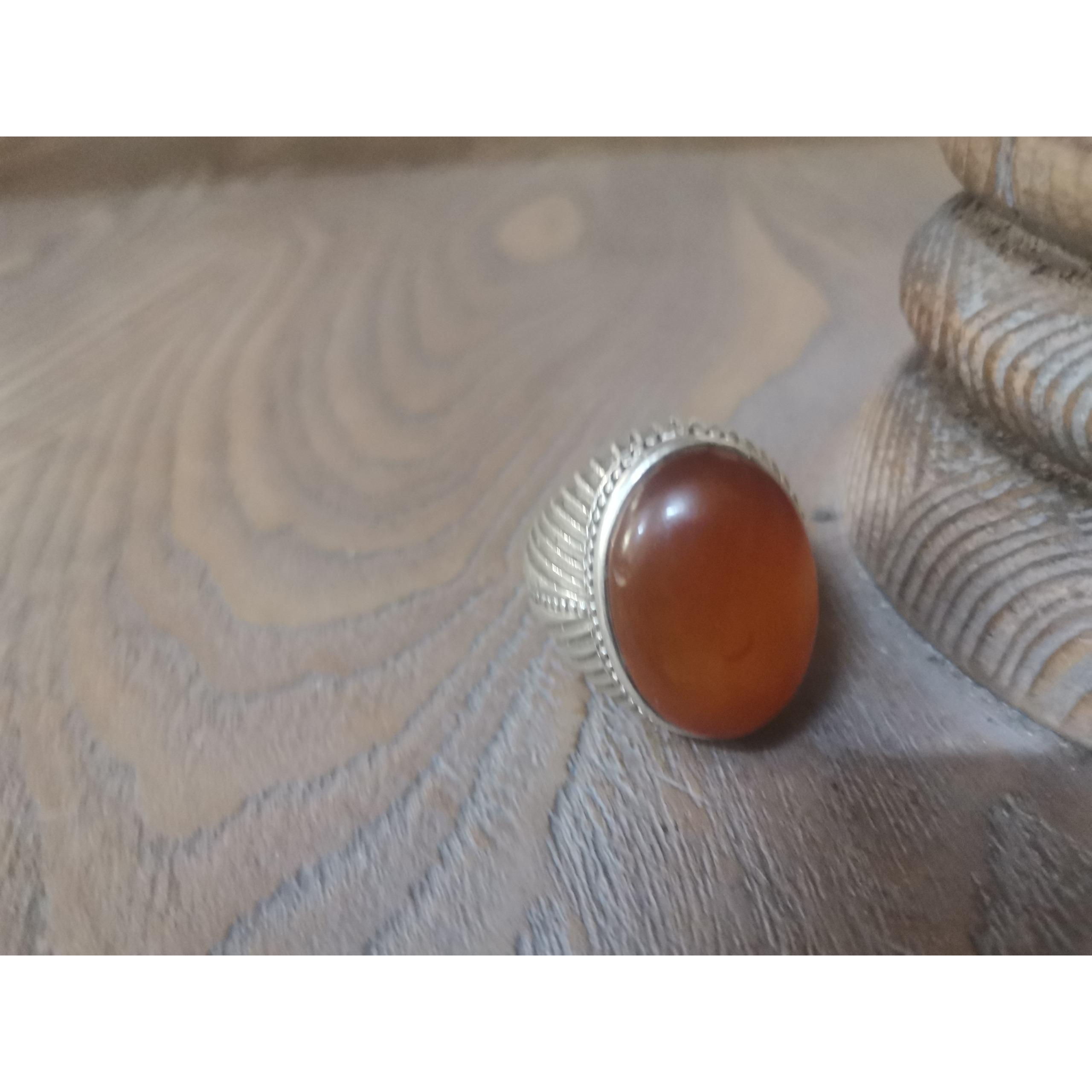 انگشتر نقره با نگین عقیق زیبا و شفاف کهنه و قدیمی