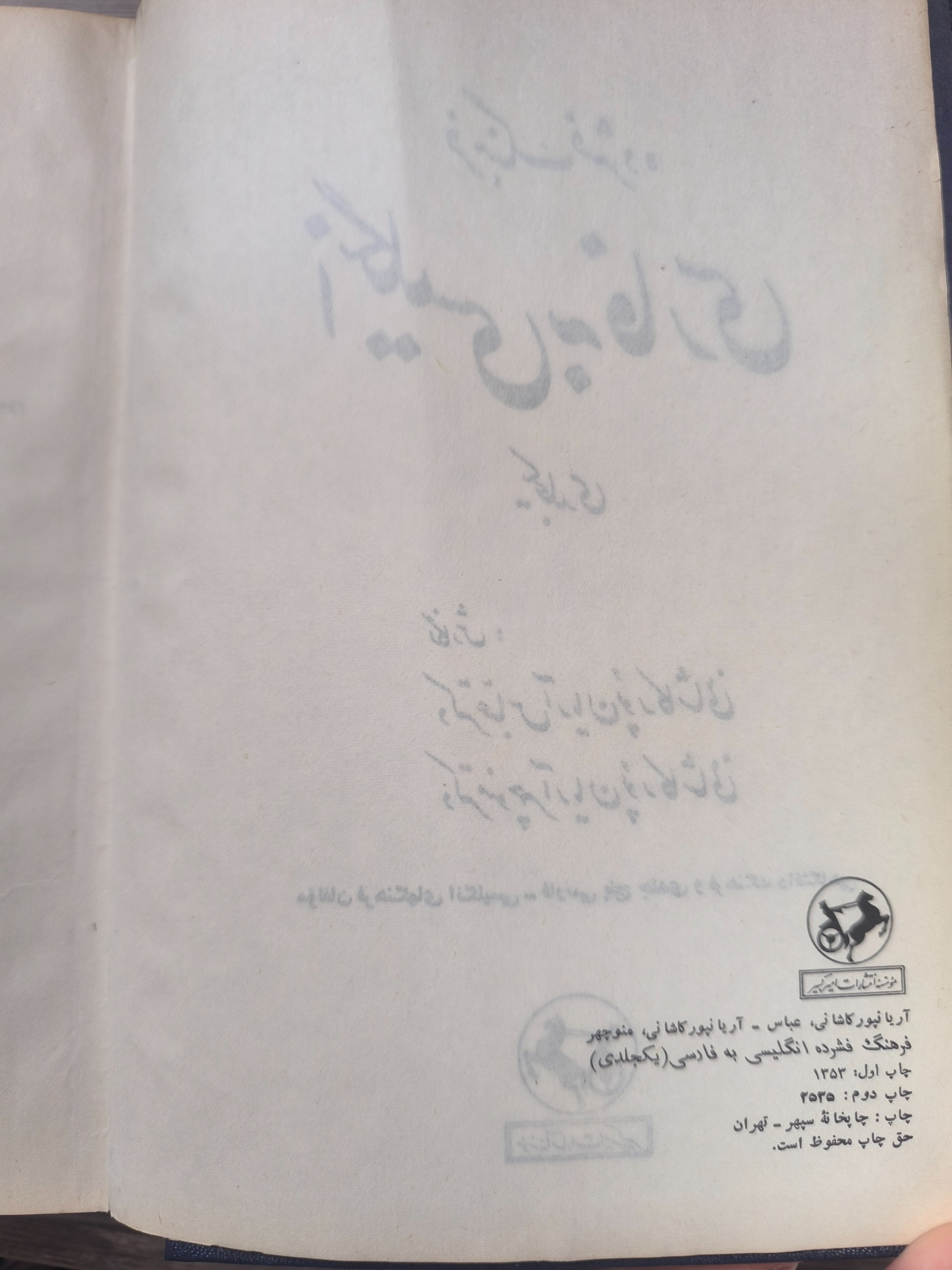 فرهنگ فشرده انگلیسی به فارسی،آریانپور(یکجلدی)1353
