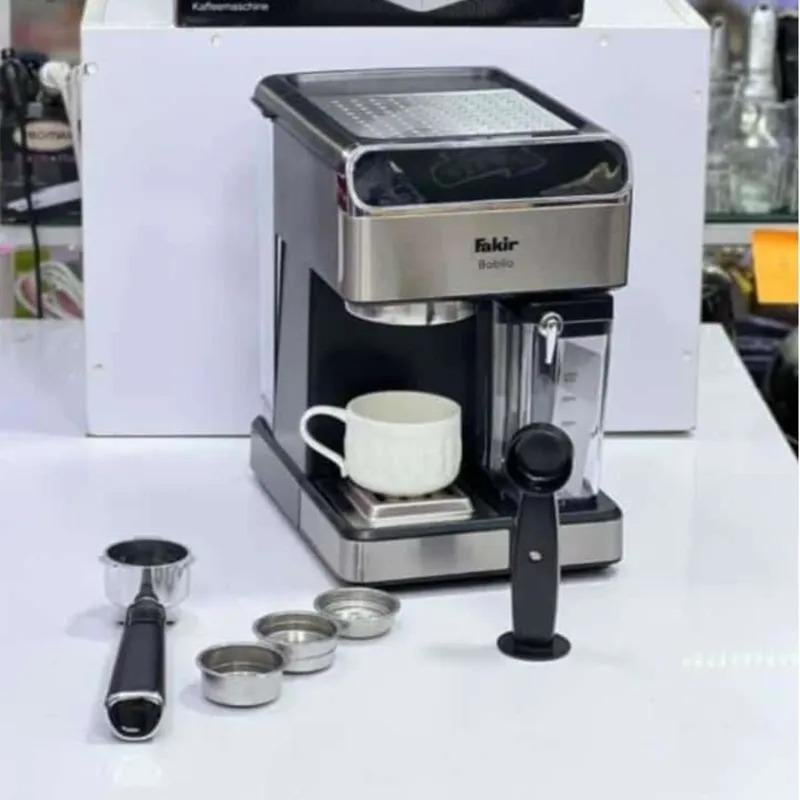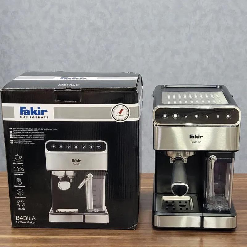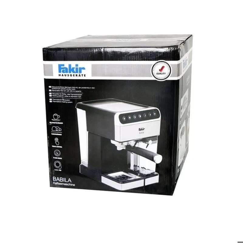 اسپرسو ساز فکر Babila یکی از بهترین مارک های و مدل های دستگاه اسپرسو ساز و قهوه ساز خانگی اتوماتیک ساخت شرکت Fakir آلمان با قیمت ارزان و کیفیت بالا می باشد. به علاوه اسپرسو ساز فکر مدل Babila از نظر کیفیت و کارکرد جزو بهترین محصولات حال حاضر بازار به حساب می آید. این دستگاه قهوه ساز فکر بابیلا تمام اتوماتیک و مجهز به صفحه نمایش ال سی دی لمسی میباشد که تنها با لمس صفحه تنوع بی نظیری از اسپرسو و ترکیبات آن را در اختیار کاربر میگذارد. این دستگاه اسپرسو ساز فکر بابیلا دارای مخزن شیر می باشد و به صورت اتوماتیک برای شما کاپوچینو و لاته به حالت چند رنگ و طبقه ای آماده میکند. شرکت فکر Fakir این اسپرسو ساز نیمه اتومات را با قابلیت های زیادی و عملکرد عالی طراحی و روانه بازار کرده است.