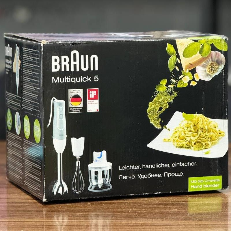 گوشت کوب برقی براون مدل MQ 525 یک دستگاه گوشتکوب میان ردهی شرکت براون می باشد. این دستگاه از یک تیغهی استیل ضد زنگ بهره میبرد. میلهی گوشتکوب نیز فلزی است. این دستگاه دارای ظرف خردکن با گنجایش 0.350 میلی لیتر است. جنس ظرف خُردکن از پلاستیک است و تیغهی داخل آن از جنس استیل ضد زنگ می باشد. به همراه این ظرف یک ظرف پلاستیکی دیگر نیز وجود دارد که مدرج است. از این ظرف برای له و کوبیدن مواد استفاده می شود. گنجایش این ظرف 0.6 لیتر می باشد. طراحی این دستگاه گوشتکوب در قسمت دسته دارای حالت ارگونومیک است که کار با دستگاه را راحتتر می کند و دست در هنگام کار با این دستگاه خسته نمی شود. این محصول براون در قسمت تیغه از تکنولوژی PowerBell استفاده می کند. این تکنولوژی باعث می شود تا در هنگام کار با دستگاه، مواد را بهتر و یکنواخت خرد و له کند. این دستگاه همچنین دارای تکنولوژی SplashControl است. این فناوری باعث می شود که مواد با عبور از تیغه پرتاب نشود و به بیرون از ظرف گوشت کوب نریزد.