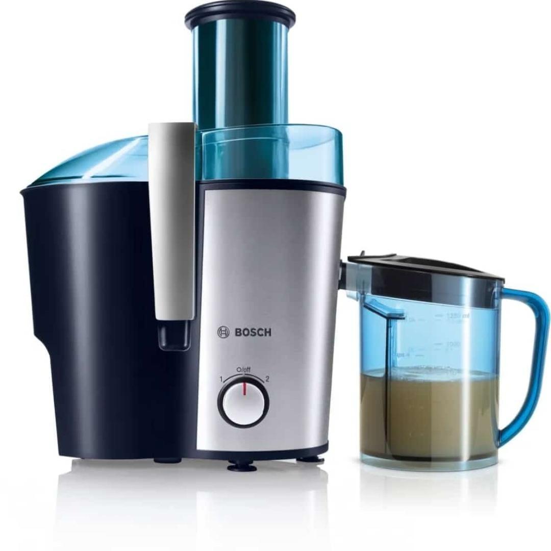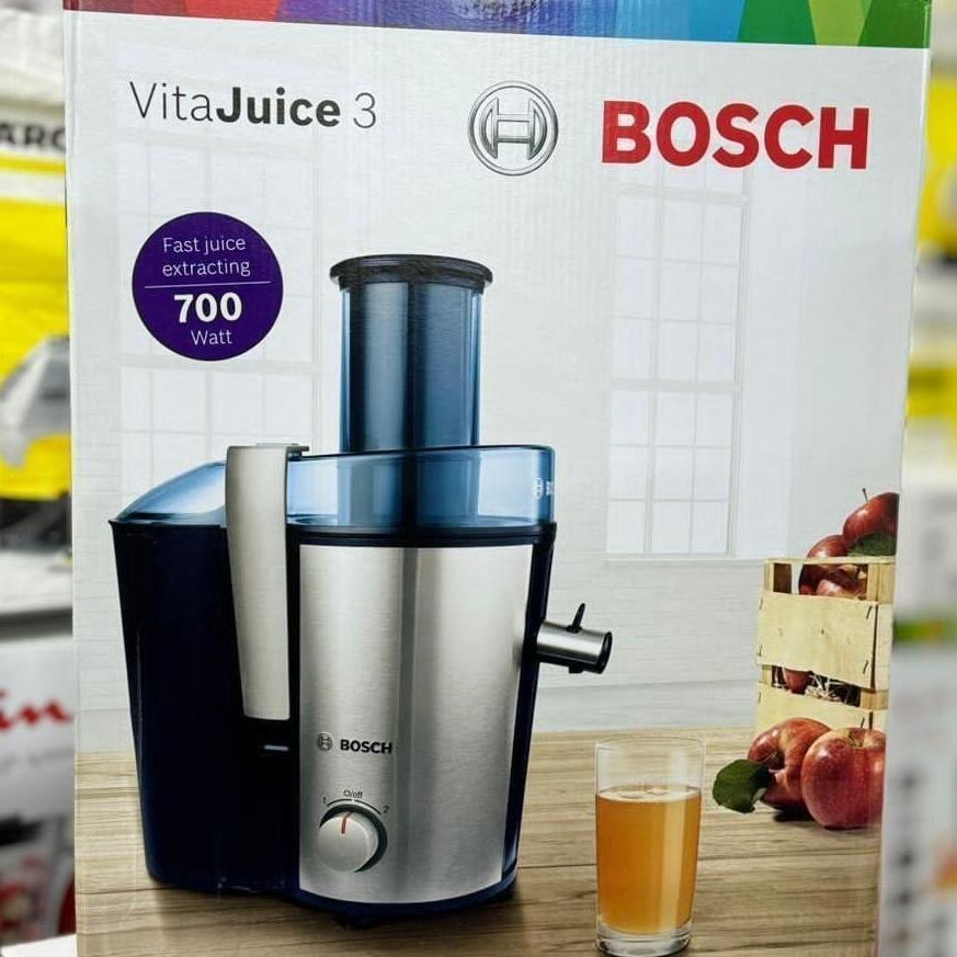 آبمیوه گیری بوش مدل «MES3500» از محصولات پرفروش و پرطرفدار این شرکت است که در کنار طراحی زیبا، کیفیت ساخت بالایی هم دارد. این آبمیوه گیری دارای دو مخزن آبمیوه و تفاله است که هر کدام به گونهای مجزا از دستگاه در کنار آن قرار گرفتهاند. قابلیت جدا شدن مخزنها علاوهبر نظافت آسانتر، ظرفیت بیشتری را هم در اختیار دارندگان آن قرار میدهد. لازم به ذکر است که تیغه اصلی این دستگاه آب میوه گیری از جنس استیل ضد زنگ بوده و دهانه آن هم از قطر مناسب برخوردار است. علاوه بر فیلتر آب میوه گیری که به راحتی قابل شست و شو است، میتوان لوازم جانبی آن را هم در ماشین ظرفشویی قرار داد. برای این دستگاه اقلام همراهی نظیر مخزن پلاستیکی آبمیوه که شفاف و دارای درجه بندی است و همچنین مخزن تفاله آبمیوه گیری در نظر گرفته شده که به راحتی میتوان آنها را پس از پر شدن از دستگاه جدا کرد و پس از وقفهای کوتاه آنها را خالی و برای ادامه فرآیند آبمیوه گیری روی دستگاه قرار داد. آبمیوهگیری بوش مدل «MES3500» دستگاهی تککاره است و میتوان توان آن را در دو سرعت تنظیم کرد. پایههای ضد لغزش زیر این دستگاه مانع از لرزش و جابجایی آن حین کار میشود. لوله خروجی دستگاه و پارچ آبمیوه آن طوری طراحی شدهاند تا آبمیوه مستقیم وارد پارچ شده و چکهای ایجاد نشود. لازم به ذکر است که ظرفیت پارچ این آب میوه گیری بوش حدود 3 تا 4 لیوان کوچک یا متوسط است .