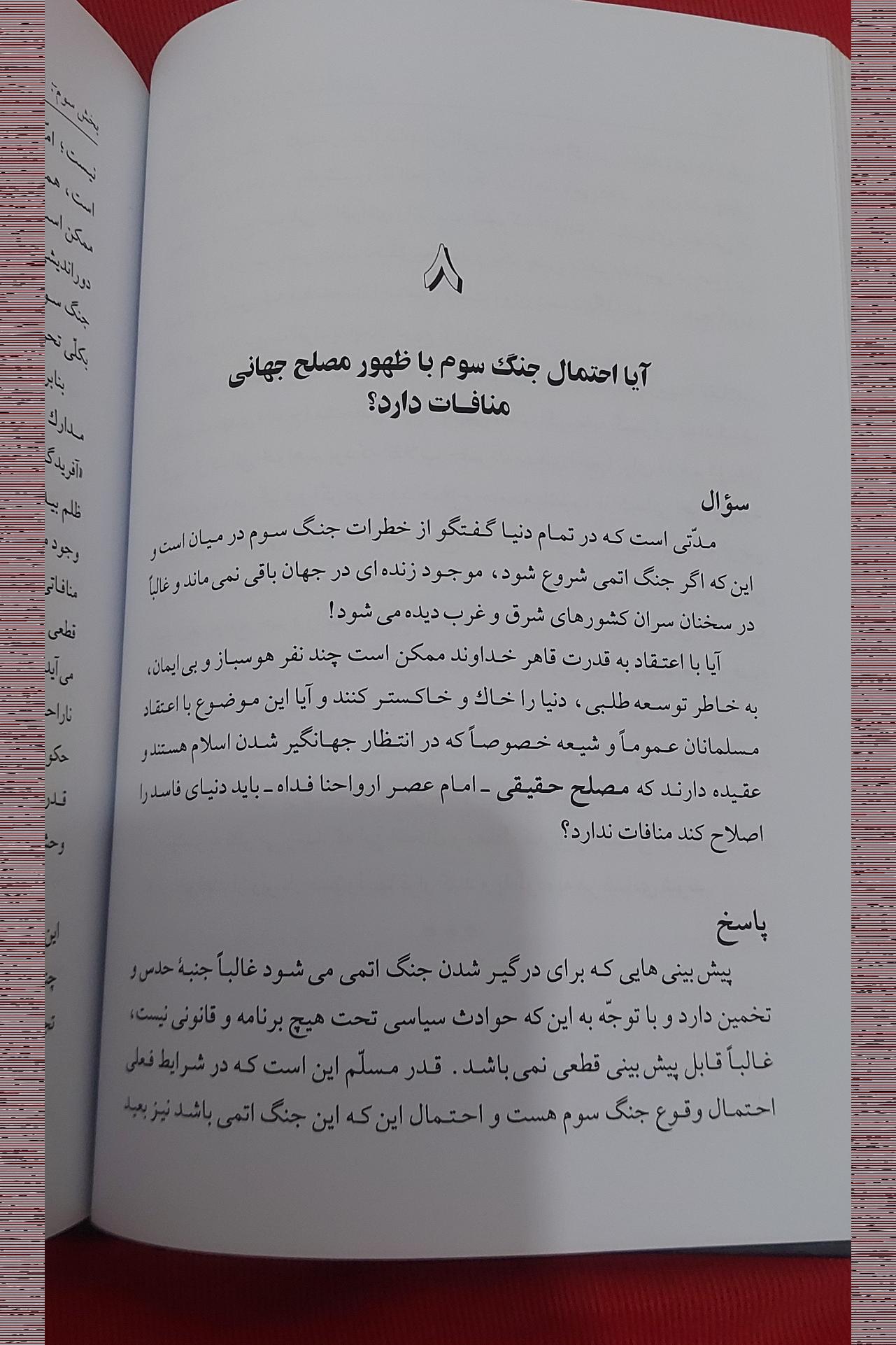توضیحات تکمیلی : کتاب با آنکه برای سال 1390 میباشد ولیکن کاملا نو و ورق نخورده است و تقدیم حضور علاقمندان میگردد.تهیه شده از جلد و کاغذ اعلا.کتاب به طیف گوناگونی از سوالات با سر فصل هایی طبقه بندی شده با موضوعی معین میپردازد که به زعم نگارندگان این کتاب به رفع شبهات عمیقی پرداخته ،که ممکن است بر هر انسانی اتفاق بیفتد.همچنین شبهات و سوالاتی که در عصر مدرن با آن رو به رو هستیم...من جمله: ذات خدا، مهدویت و مصلح جهانی و جنگ جهانگیر سوم و .... از فصول جذاب یکی پاسخ به ایرادات و شبهات فیلسوفان است من جمله فیلسوف شهیر و دانشمند انگلیسی برتراند راسل (پیرامون مسئله رد برهان علت العلل توسط راسل)