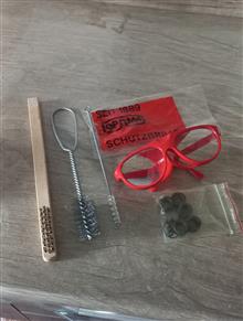 جعبه، کاتالوگ، سه عدد برس مخصوص تمیزکاری، عینک ایمنی مخصوص، چهار عدد خشاب، 4عدد استپ رینگ یدکی ، 3عدد فنر مخصوص، 3عدد واشر ،یکعددمیله، یکعدد دستمال نمدی تمیزکاری هیلتی،واسپری که نشت کرده روی دستمال وخالی شده سوالی هست درخدمتم. بدلیل حساسیت دستگاه مر جوعی ندارد.لطفا طبق عکسها وتوضیحات خرید بزنید.